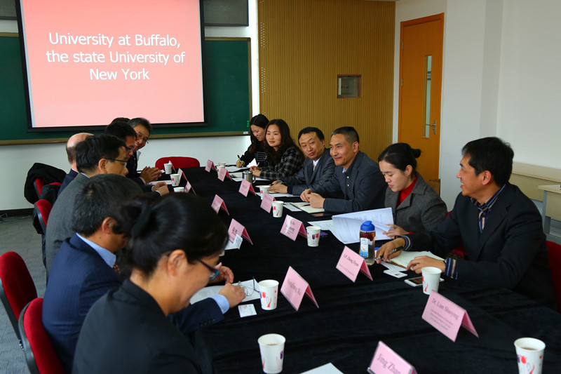 美國紐約州立大學(xué)布法羅分校自然與人文學(xué)院院長馬克.塞文森博士(Mark Severon Dr.)、中國中心主任張杰教授、數(shù)學(xué)系主任許洪良教授、藝術(shù)系蔣臨夏教授等6人與藝傳學(xué)院院長羅子明、學(xué)院黨委書記林剛、副書記劉晶、副院長鄭子云、國際處副處長賀冬萌、藝傳學(xué)院教師代表孫進(jìn)、劉莉、盛鋮等參加了此次會談。
