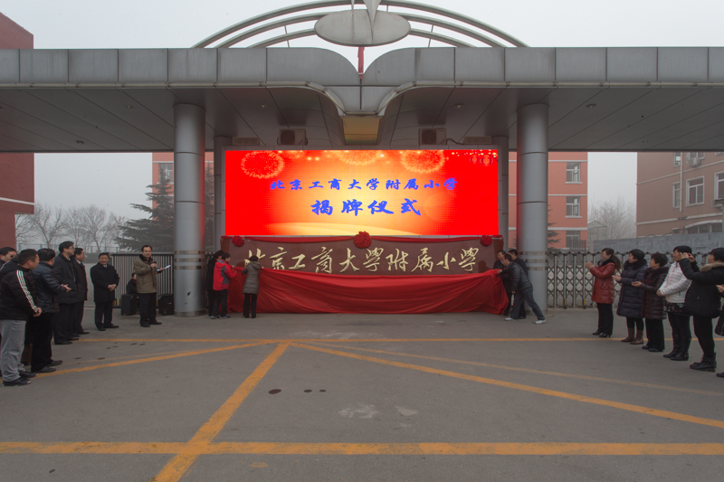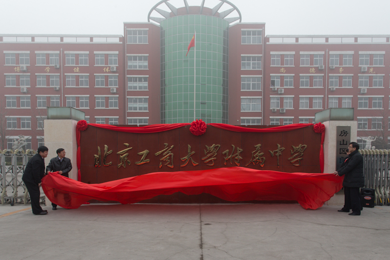 簽約儀式后,張雪、孫寶國、曾贊榮、吳會(huì)杰與兩所學(xué)校校長(zhǎng)隗和春、李慶華共同為“北京工商大學(xué)附屬中學(xué)”、“北京工商大學(xué)附屬小學(xué)”揭牌。在熱烈的掌聲中,在場(chǎng)師生一同見證了這難忘的時(shí)刻。