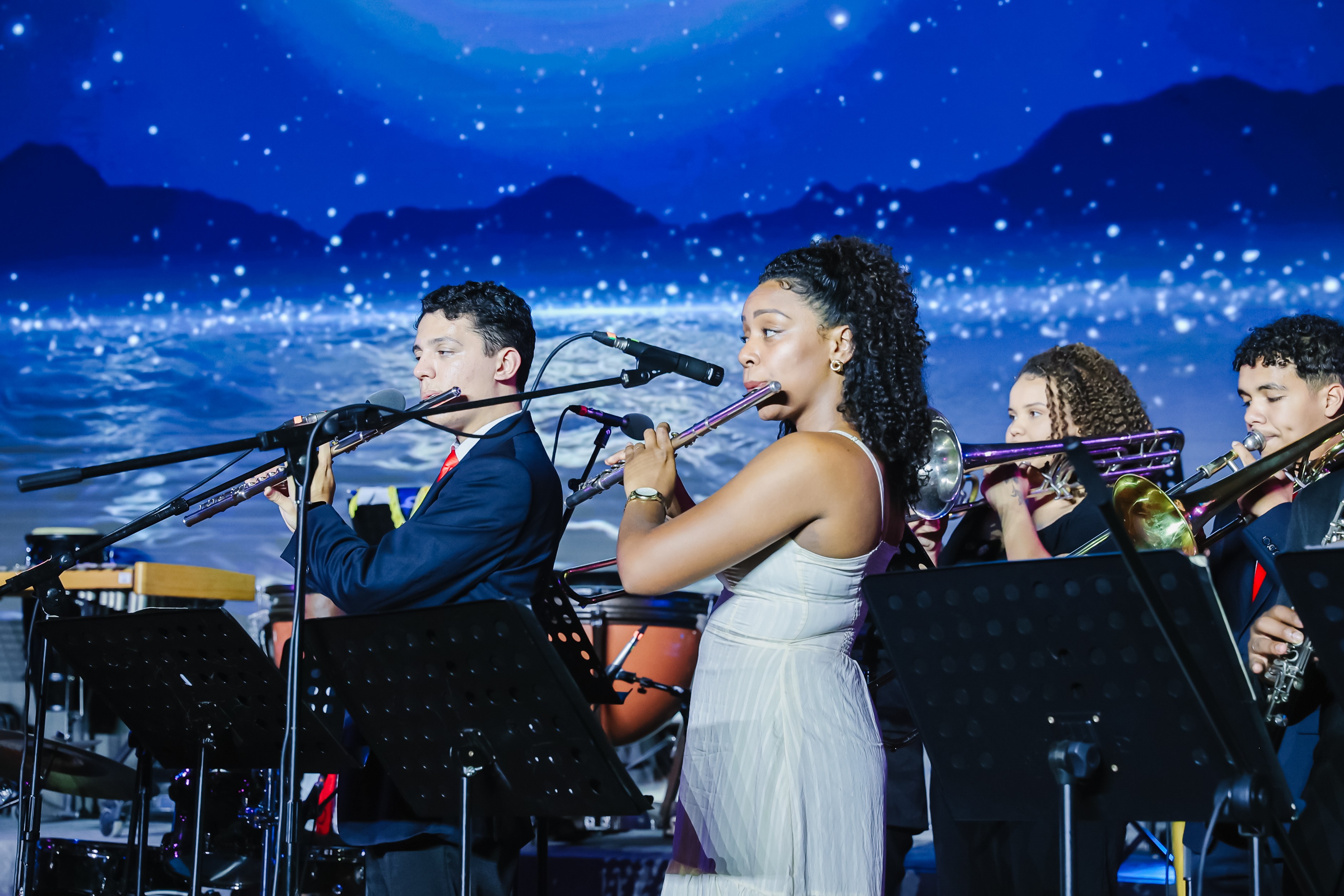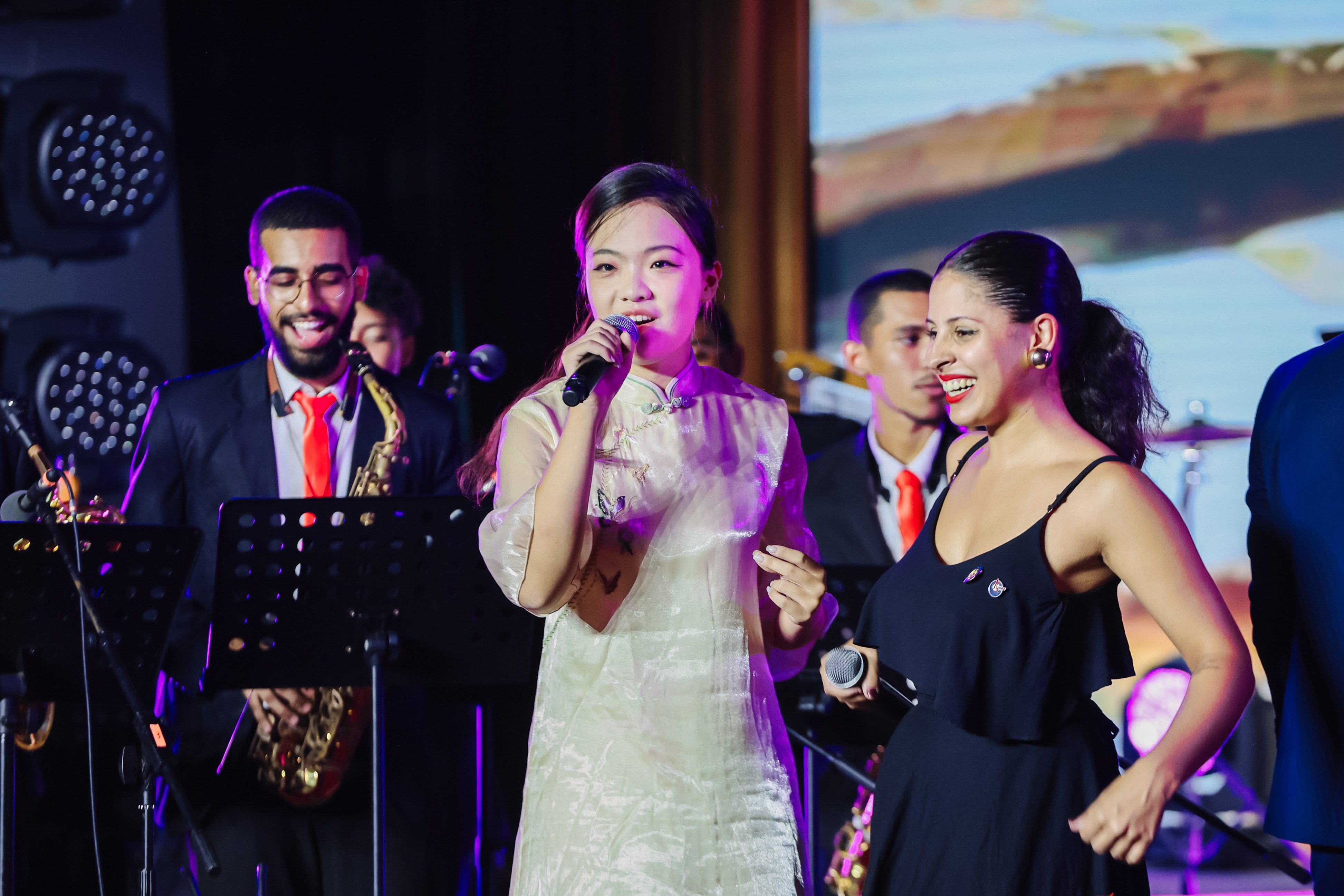 巴西民謠《雀鳥嘰咕》《想念》《泰姬瑪哈》的歡快旋律描繪出了巴西的熱情藍圖,雙方共同合作演唱巴西與中國曲目《The girl from Ipanema》《如愿》,在音符的海洋中,我校師生們感受著熱烈的情感共鳴,重新認識了這群最具活力的里約青年,也讓現場觀眾領略到了巴西音樂的獨特韻味。
