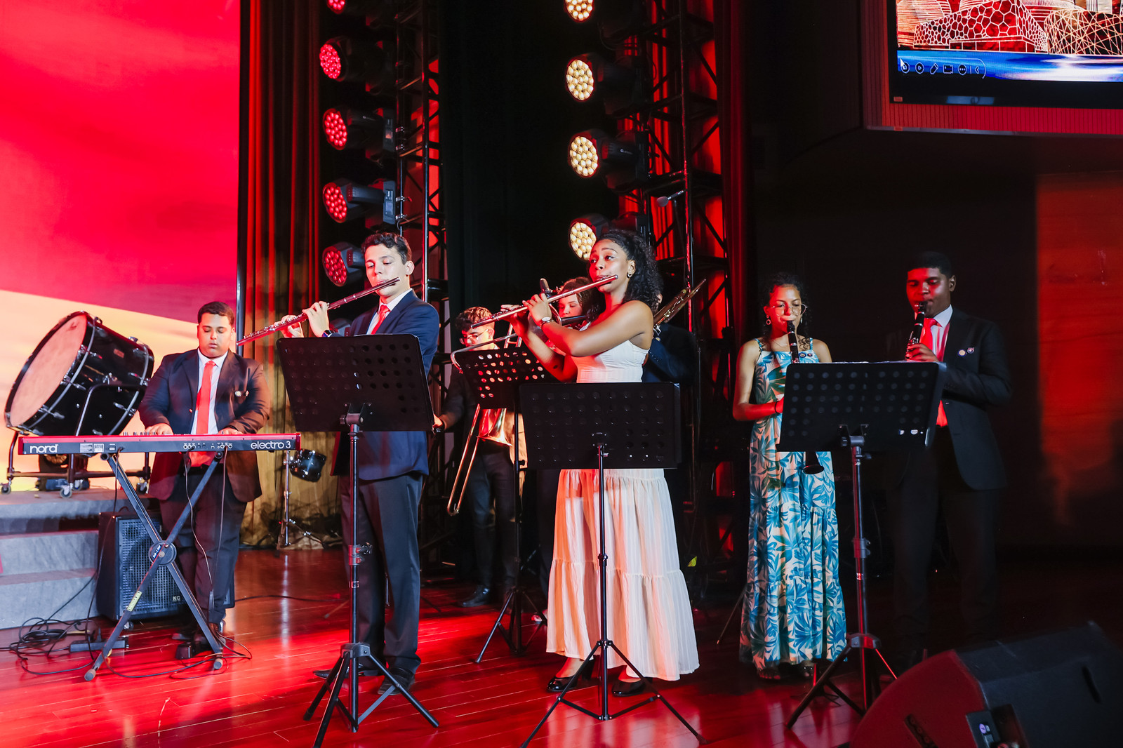 半個世紀以來,中巴雙方始終秉持相互尊重、平等相待、合作共贏的原則,兩國關系始終保持穩定發展。中巴青年的友誼也如青春一般,永不散場。最后巴西里約要塞管樂團與我校合唱團共同演繹《我愛你中國》,將整場音樂會氣氛推向高潮。現場師生手里揮舞著中國和巴西的國旗,他們見證了中巴文化的璀璨交匯,感受到了兩國青年之間的深厚情誼。
