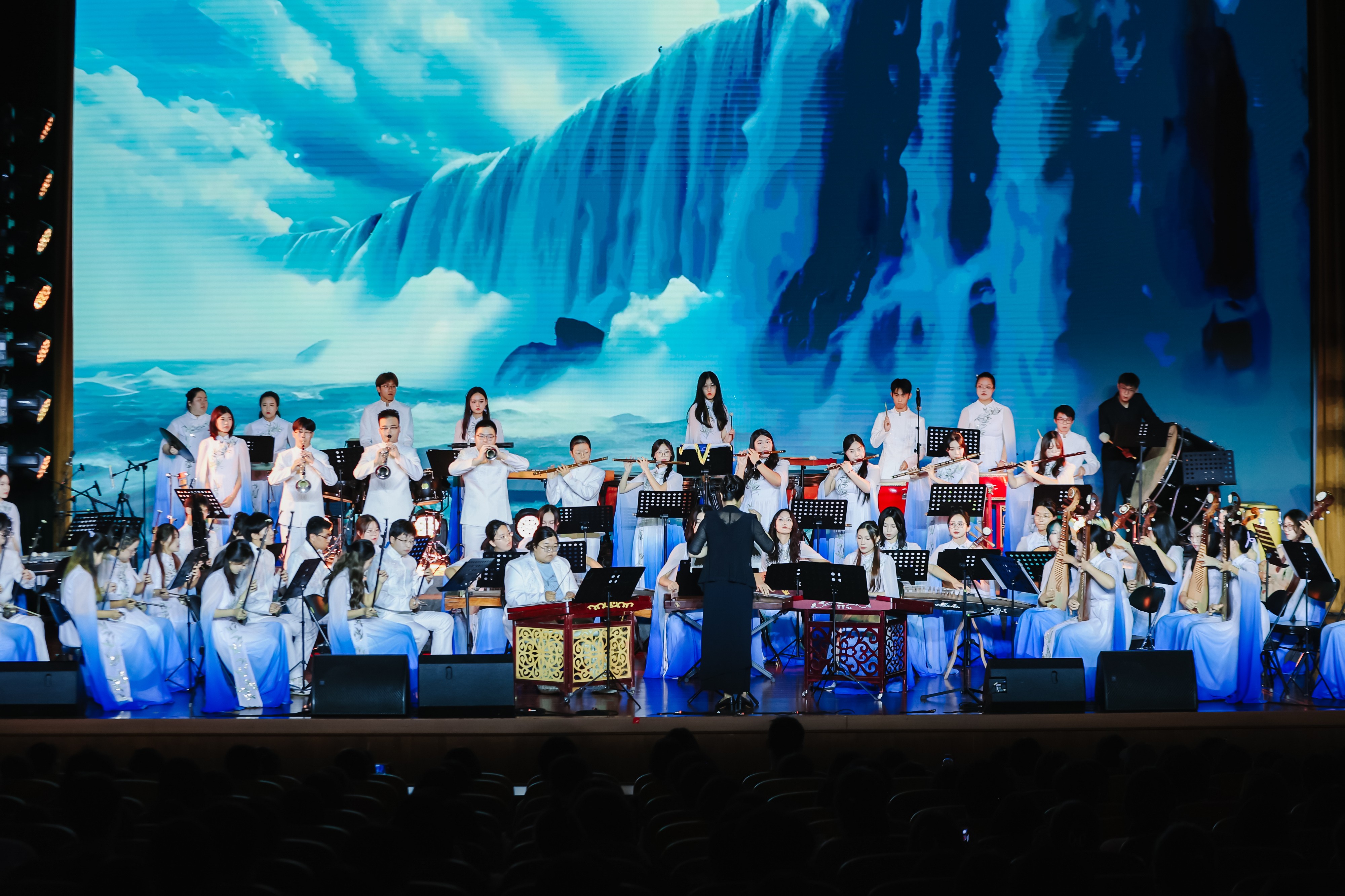 傳統民樂高亢悠揚的聲調與交響樂團磅礴大氣的襯托相得益彰,融匯中西、貫通古今的音樂旋律盡顯東西方文化交融之美,贏得現場觀眾陣陣熱烈掌聲。