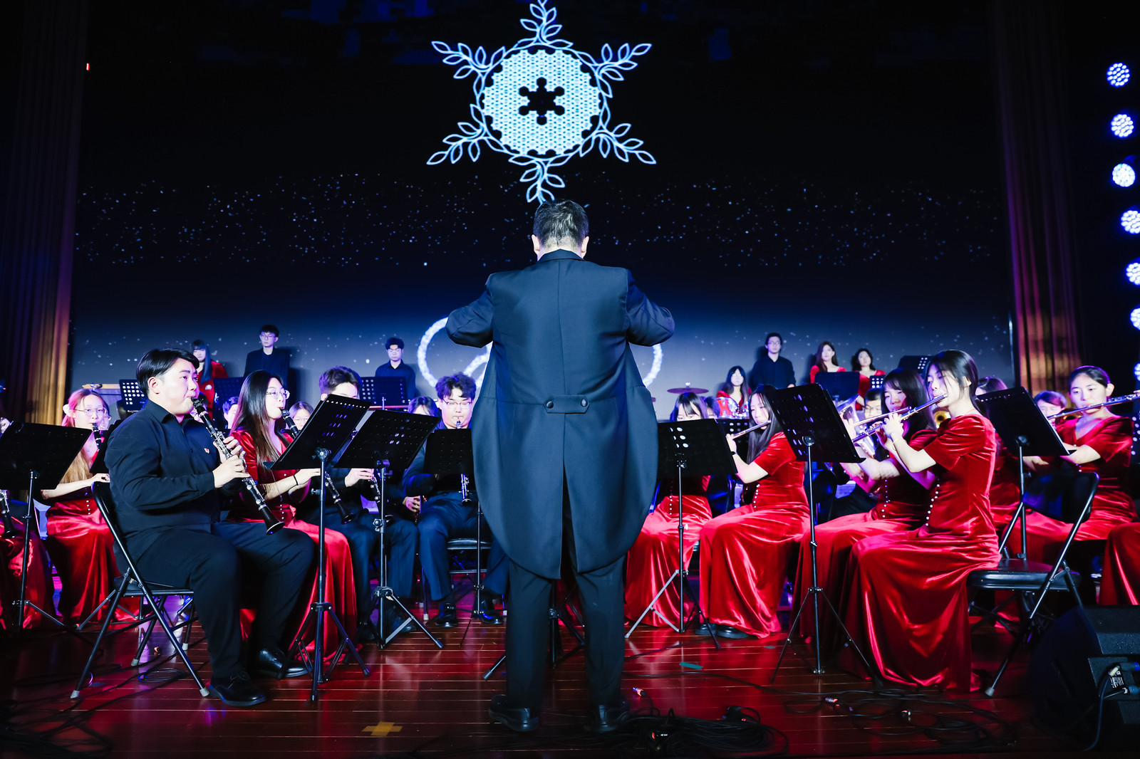千萬雪花,競相開放。管樂團演繹2022年冬奧會的主題曲《雪花》,把師生們的思緒帶回了北京冬奧那段時光,片片雪花就像北工商的青年志愿者們一樣,用熱情服務冬奧、用微笑溫暖世界,雪花也像中巴雙方的深厚友誼,純潔而堅定,讓世界人民愛上中國,愛上中國文化!《青春之舞》歡快熱烈、靈動悅耳,富有民族特色的打擊樂器與樂隊舞動配合,獻給風華正茂、青春熱血的同學們!