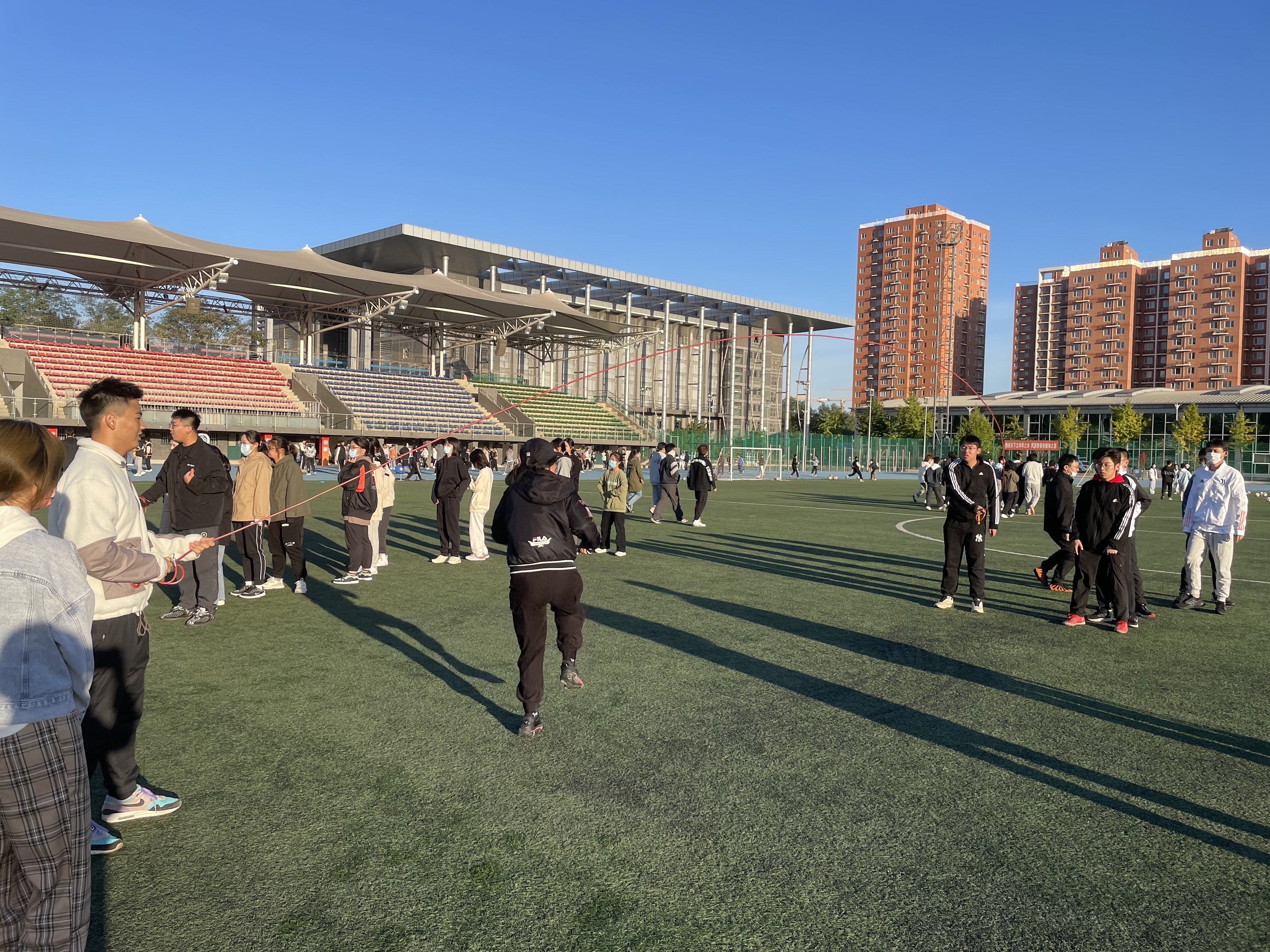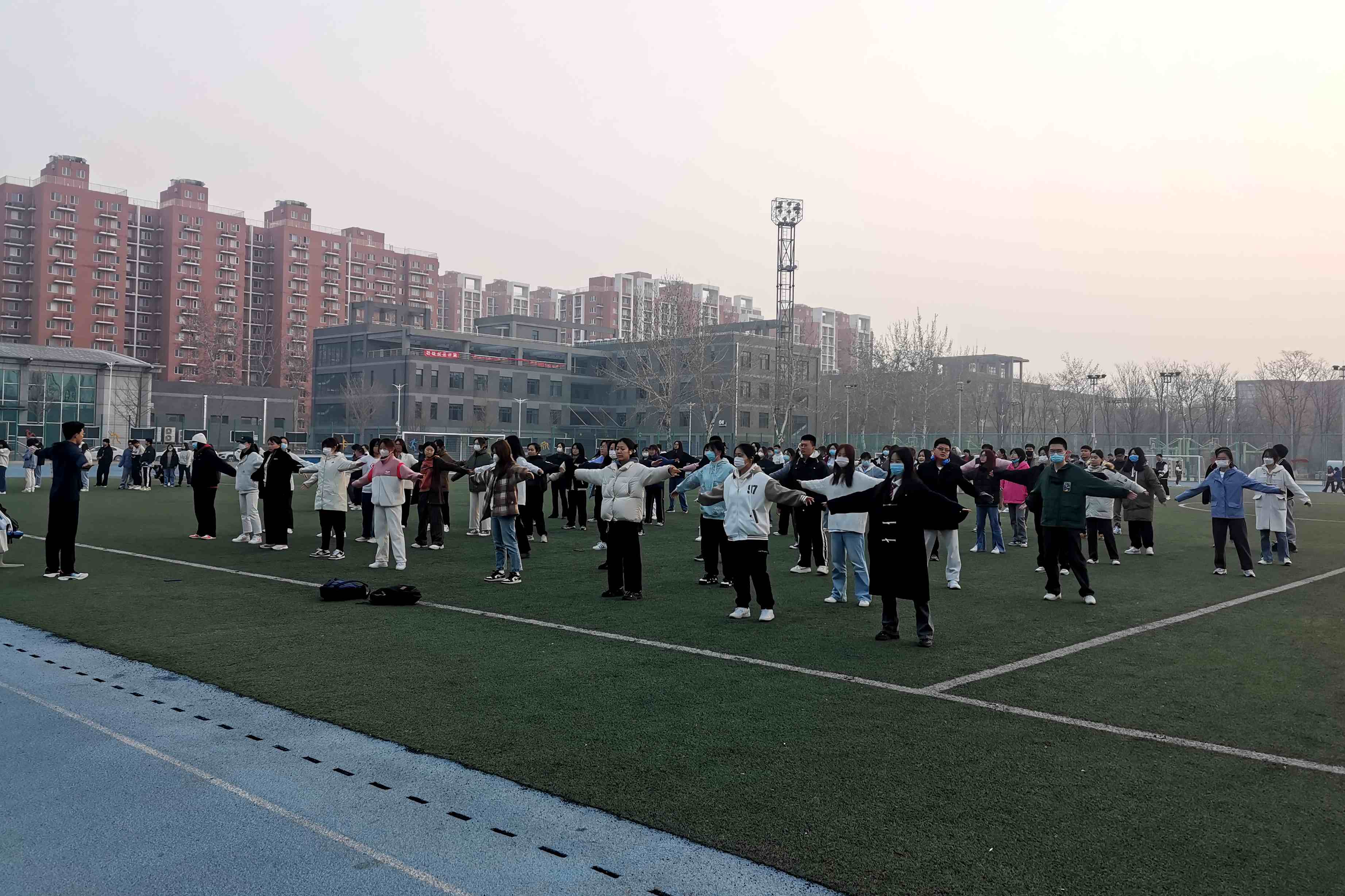 數學與統計學院為同學們準備了飛盤、長繩、毽子等多種趣味性十足的器材,讓同學們根據自己的喜好,自由組隊選擇不同的活動項目,培養學生的競爭意識、協作精神和公平觀念;輕工科學技術學院主要以跳操、跑步為主,培養學生勇敢頑強的性格、超越自我的品質;化學與材料工程學院和人工智能學院積極開展廣播體操、球類等團體活動,激發學生運動熱情,增強身體素質,培養學生團結協作的集體主義精神。