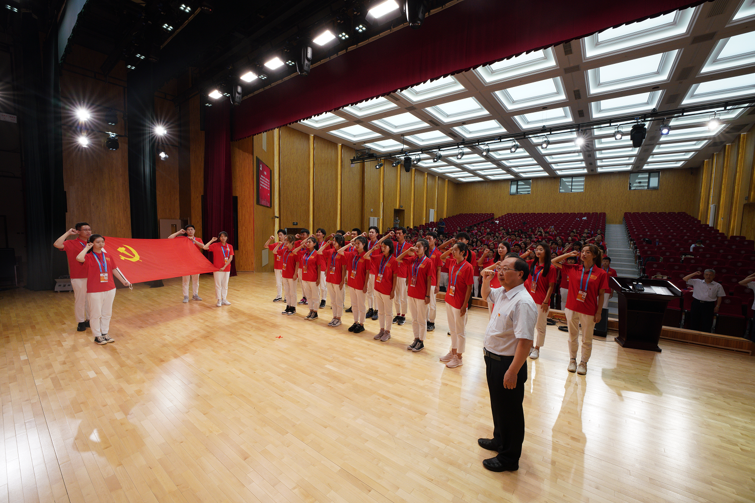 6月28日正式演出前,學校召開正式演出總動員。黃先開書記作動員講話,并帶領合唱團中的新黨員進行集中入黨宣誓、老黨員重溫入黨誓詞。