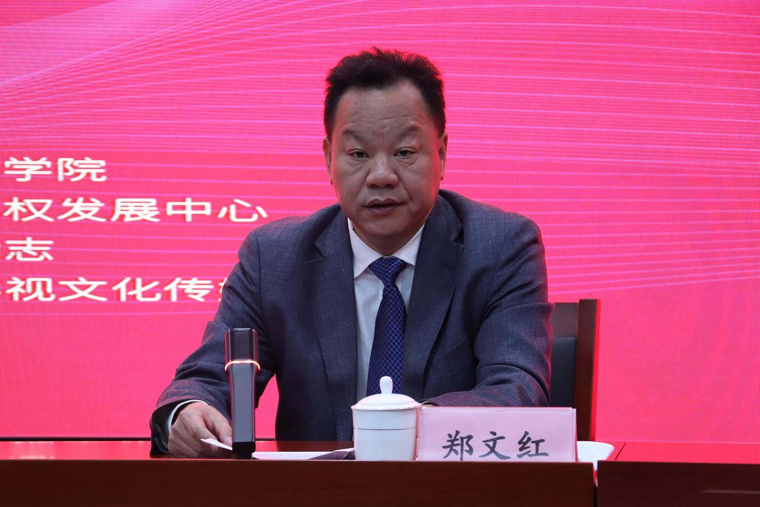 鄭文紅為開幕式致辭。他介紹了學校的辦學特色和知識產(chǎn)權(quán)領(lǐng)域的研究成果,表達了致力我國商標法研究與人才培養(yǎng)的決心與愿景,并強調(diào),“萬慧達杯”第二屆中華商標協(xié)會全國高校商標熱點問題辯論賽的舉辦,是貫徹落實黨和國家關(guān)于知識產(chǎn)權(quán)事業(yè)重要戰(zhàn)略部署的重要體現(xiàn),有利于推動我國商標保護、宣傳與教育工作的發(fā)展,衷心祝愿本次比賽圓滿成功,各參賽隊伍取得優(yōu)異成績。