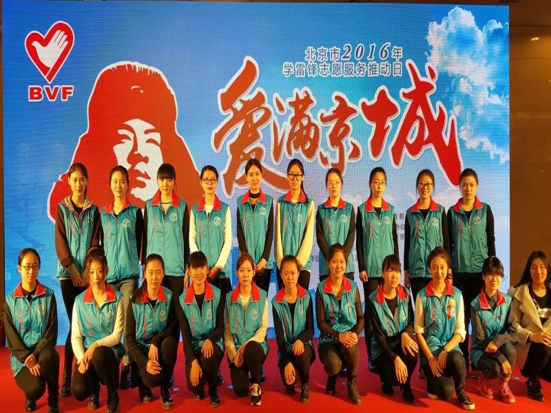 3月4日,校團委組織20名志愿者參與了由市委宣傳部、首都文明辦、市志愿服務聯合會等單位,在北京國際會議中心舉辦的“愛滿京城”北京市2016年學雷鋒志愿服務推動日活動儀式。我校學生擔任頒獎禮儀志愿者。她們姿態優美,落落大方,以最熱情的服務和最美麗的微笑向在場嘉賓展示了我校志愿者的精神風貌。