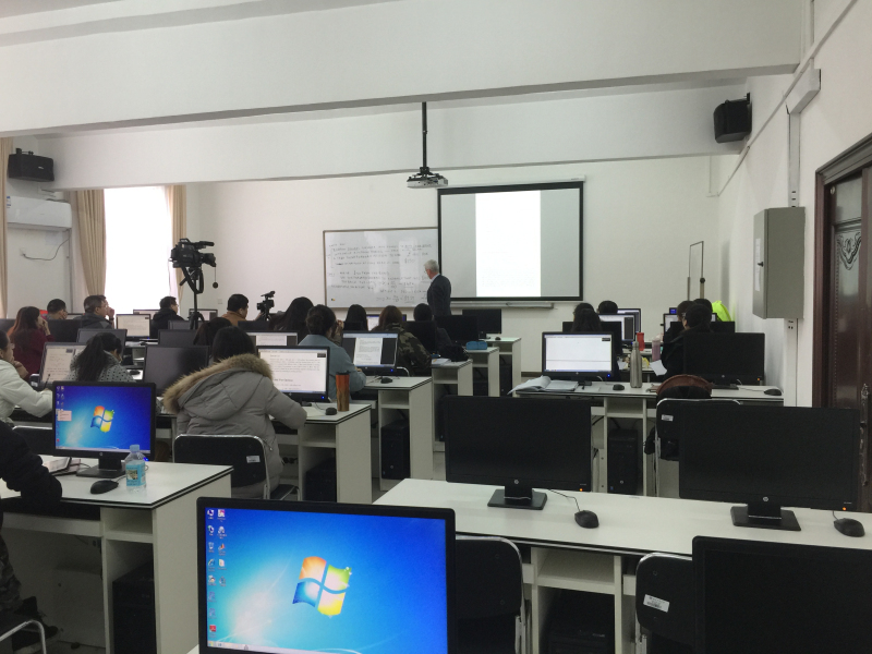 目前,2014級中外合作專業的金融數學模型和R統計軟件兩門課程都順利在此實驗室講授。擔任金融數學模型主講的是愛爾蘭考克大學數學系主任Bernard Hanzon教授,擔任R統計軟件主講的是愛爾蘭考克大學數學系Jian Huang教授。