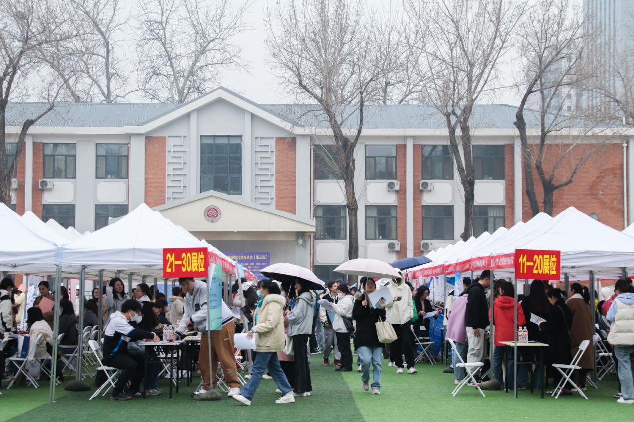 3月27日,我校2024屆春季綜合類第三場雙選會在阜成路東區操場舉行。雖春雨綿綿,但各企業仍如約而至。此次雙選會共邀請包括中國建設銀行股份有限公司北京市分行、中國郵政集團有限公司北京市分公司、北京首汽(集團)股份有限公司、北京食品科學研究院、王府井集團股份有限公司等79家用人單位參會,共為畢業生提供就業職位215個,崗位1567個。