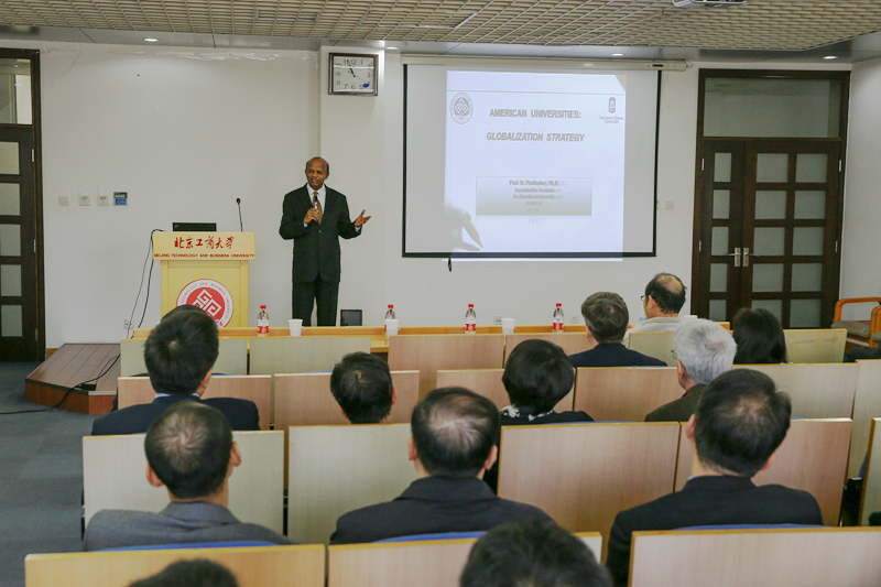 國際講堂特邀嘉賓我校國際合作伙伴院校代表來自美國北伊利諾伊大學的保羅·普拉貝克(Paul Prabhaker)教授從國際教育戰略化角度出發,介紹和闡述了美國大學的全球戰略化教育方式,他提出,國際教育的目的是實現資源互換,取長補短,實現雙邊共贏的教育戰略合作。同時,保羅教授提到高等教育的國際化需要充分調動社會資源、學術力量等方式,多方引入國際化理念,從學生、教師,以及校園文化等多個角度加強國際化培養。