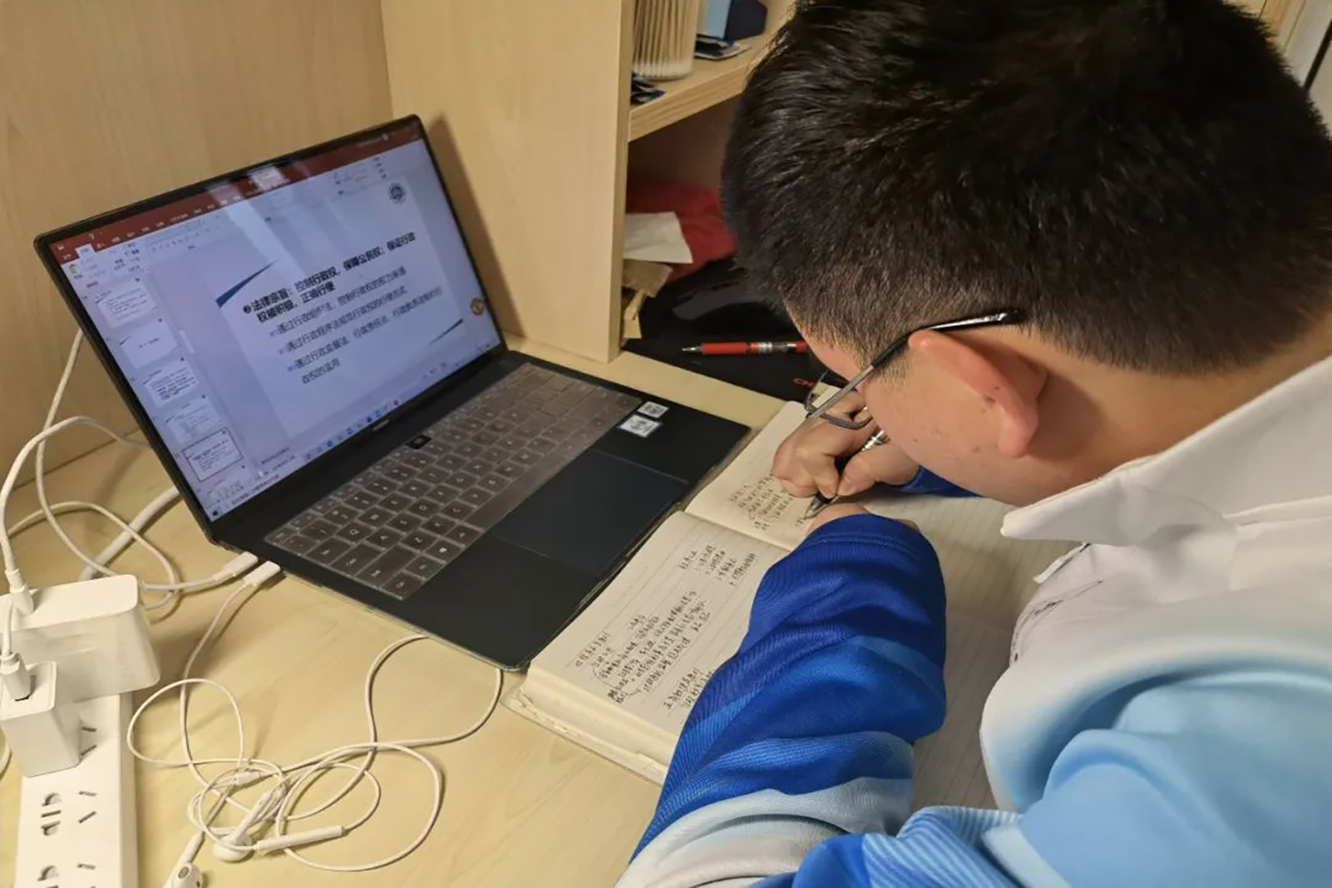 依據(jù)學(xué)校疫情防控及冬奧服務(wù)保障專班的要求,學(xué)校前期采取線上的方式進(jìn)行教學(xué)。為此學(xué)校冬殘奧會志愿者開啟了“半工作、半學(xué)習(xí)”的狀態(tài),盡管志愿者要同時(shí)兼顧志愿服務(wù)與學(xué)業(yè),但他們絲毫沒有懈怠,課上認(rèn)真聽講、積極回答問題,課后積極完成作業(yè)、整理學(xué)習(xí)筆記。