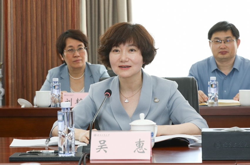 吳惠感謝學校的熱情接待,期待與北京工商大學在現有合作的基礎上進一步拓寬合作領域。她表示,兩校辦學定位互補、學科內核契合,希望通過此次調研深化共識,在物流流通、證券期貨、物聯網與大數據、供應鏈管理等領域進行深入交流,推動交流互鑒長效化,為加快新時代首都發展和教育強國建設凝聚更多力量。