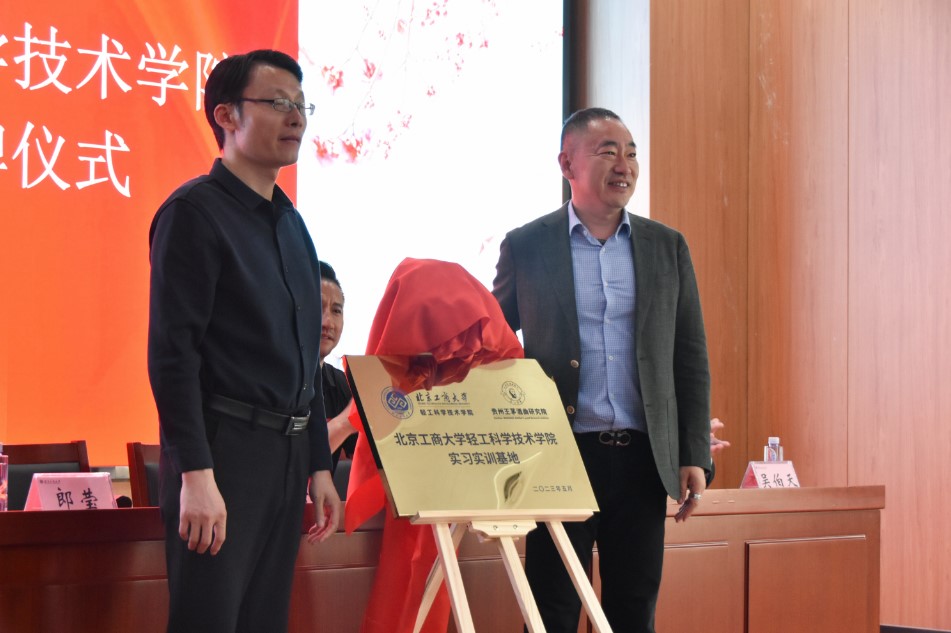 為充分發揮校、企各方優勢,深化雙方合作,活動雙方共同為貴州王茅酒曲研究院北京工商大學輕工科學技術學院實習實訓基地揭牌。