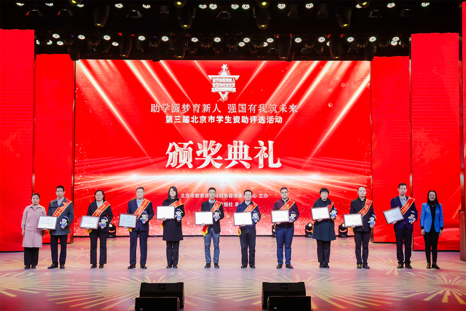 3月22日,北京市第三屆“助學圓夢育新人”學生資助評選宣傳活動頒獎典禮在京舉行。本次評選面向全市中小學、市屬高校及中等職業(yè)學校,我校獲評“首都學生資助典型經(jīng)驗單位”,學生處李雨晴榮獲“首都資助育人優(yōu)秀工作者”。全國學生資助管理中心副主任馬建斌,中共北京市委教育工委委員、北京市教育委員會副主任張永凱及各獲獎學校代表出席活動。