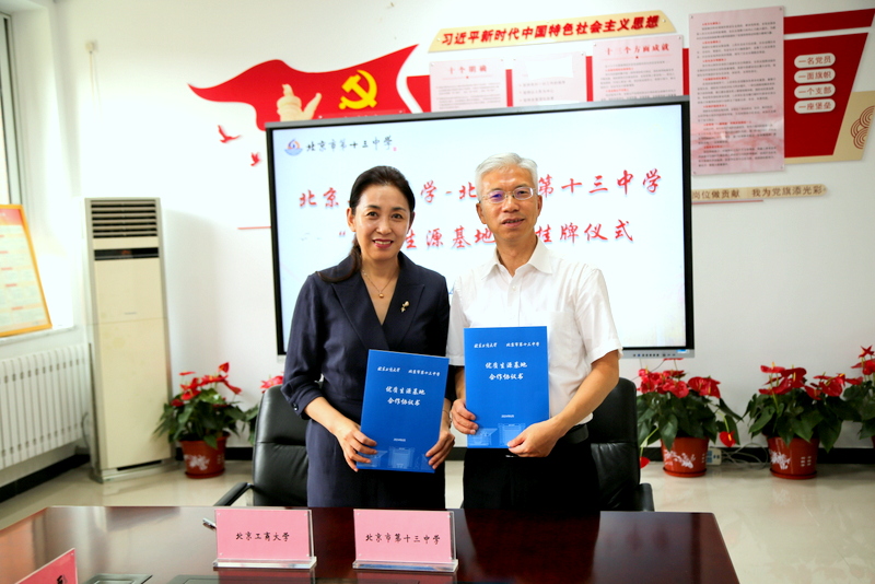 為進一步深化高等教育和基礎教育銜接,切實提高本科生源質量,做好學校本科招生和人才培養工作,6月20日下午,學校黨委常委、副校長徐丹丹帶隊赴北京市第十三中學,舉行優質生源基地簽約及授牌儀式。北京市第十三中學黨委書記、校長唐挈,副校長張立燕等同志出席活動。