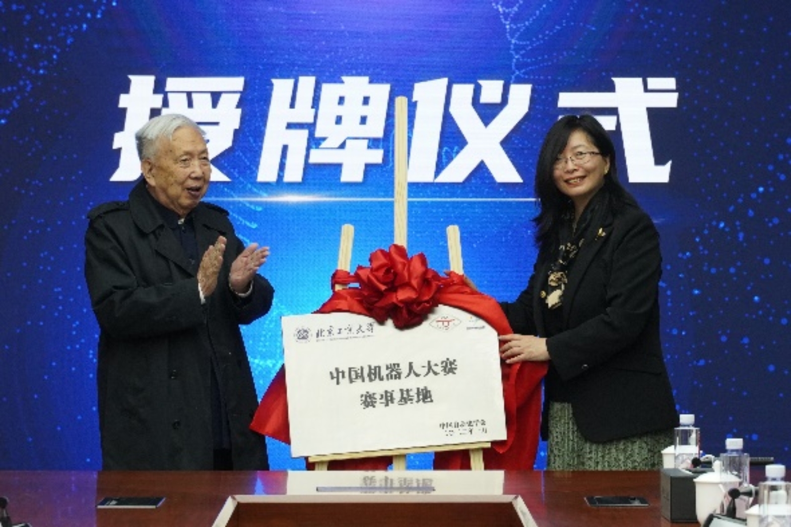 4月23日,學校在良鄉(xiāng)主校區(qū)舉行了中國機器人大賽賽事基地授牌儀式。中國自動化學會資深顧問、中國科學院院士吳宏鑫,中國自動化學會副秘書長、中國自動化學會機器人競賽與培訓部主任李實,中國自動化學會機器人競賽與培訓部副主任、北京控制工程研究所高級工程師姜萌,中國自動化學會機器人競賽工作委員會副主任、北京控制工程研究所研究員盧欣出席授牌儀式。我校常委常委、副校長左敏教授出席會議并講話。教務處副處長張敏教授,人工智能學院副院長廉小親教授、李寶河教授、孫曉榮教授、各系主任、實驗中心教師代表及學生代表參加此次授牌儀式。會議由人工智能學院院長于重重教授主持。
