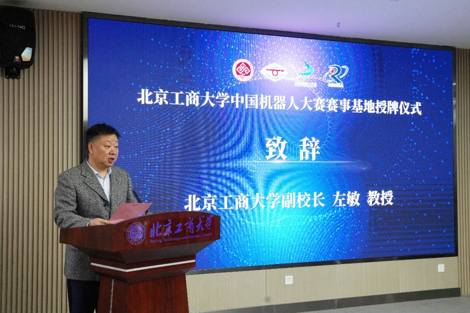 左敏在致辭中感謝自動化學會各位專家長期以來對北京工商大學,特別是對我校實踐教學和人工智能學院的關心、支持、幫助!賽事基地的獲批為我校實踐教學、學科競賽與科學研究的有機融合以及提高人才培養(yǎng)質(zhì)量,激發(fā)學科發(fā)展動力,提升學科建設水平帶來了新的機遇,為我校高水平研究型大學建設貢獻了力量。