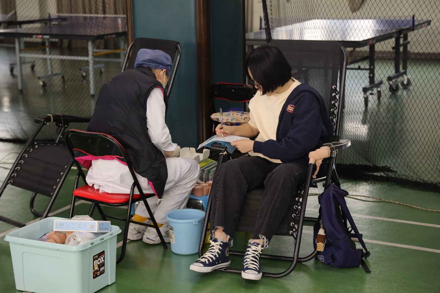 愛心點亮青春,真情詮釋奉獻。經過紅十字會學生分會的精心籌備,活動在3月30日早上8點如期開展。在活動現場,參與無償獻血的同學們在志愿者和醫護人員的引導下,有序登記填表、測量血壓、抽血化驗,積極配合做好獻血前的各項準備工作。驗血合格后,大家依次進入獻血區域,開始獻血。第一次獻血的同學者們臉上難免流露出了一絲緊張神情,但現場沒有人退縮。汩汩殷紅的血液匯聚,將點亮無數生命的希望。法學院法學224班的池硯湫表示:“這是我第一次獻血,雖然有一些緊張,但一想到自己的血能夠幫助到那些需要幫助的人就感到很值得!”