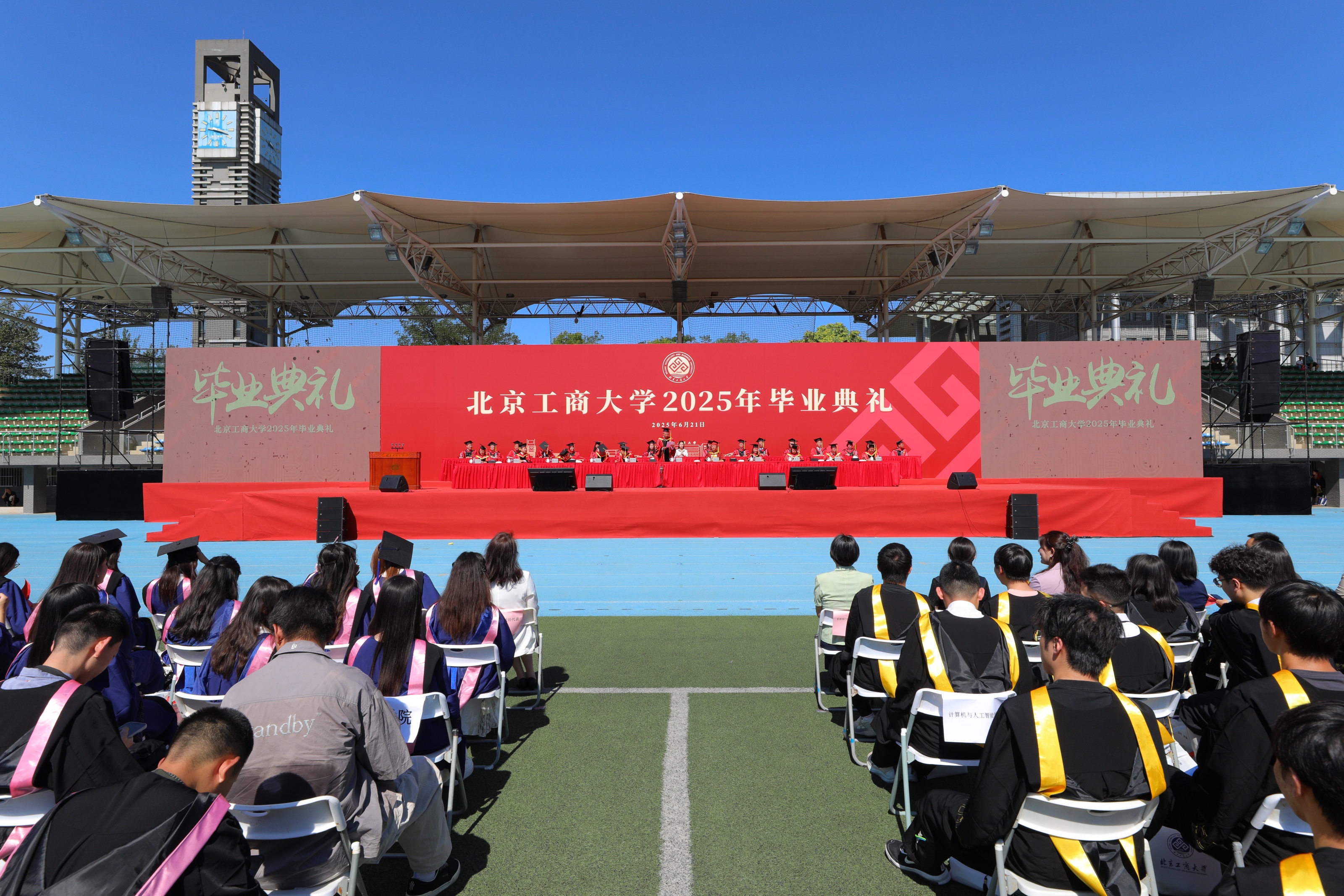 6月21日上午8:30,北京工商大學(xué)2025年畢業(yè)典禮在良鄉(xiāng)主校區(qū)東區(qū)操場(chǎng)隆重舉行。四千余名學(xué)子圓滿完成學(xué)業(yè),共上在校期間的“最后一堂大思政課”,他們即將奔向自己的山海,投身祖國(guó)最需要的地方。