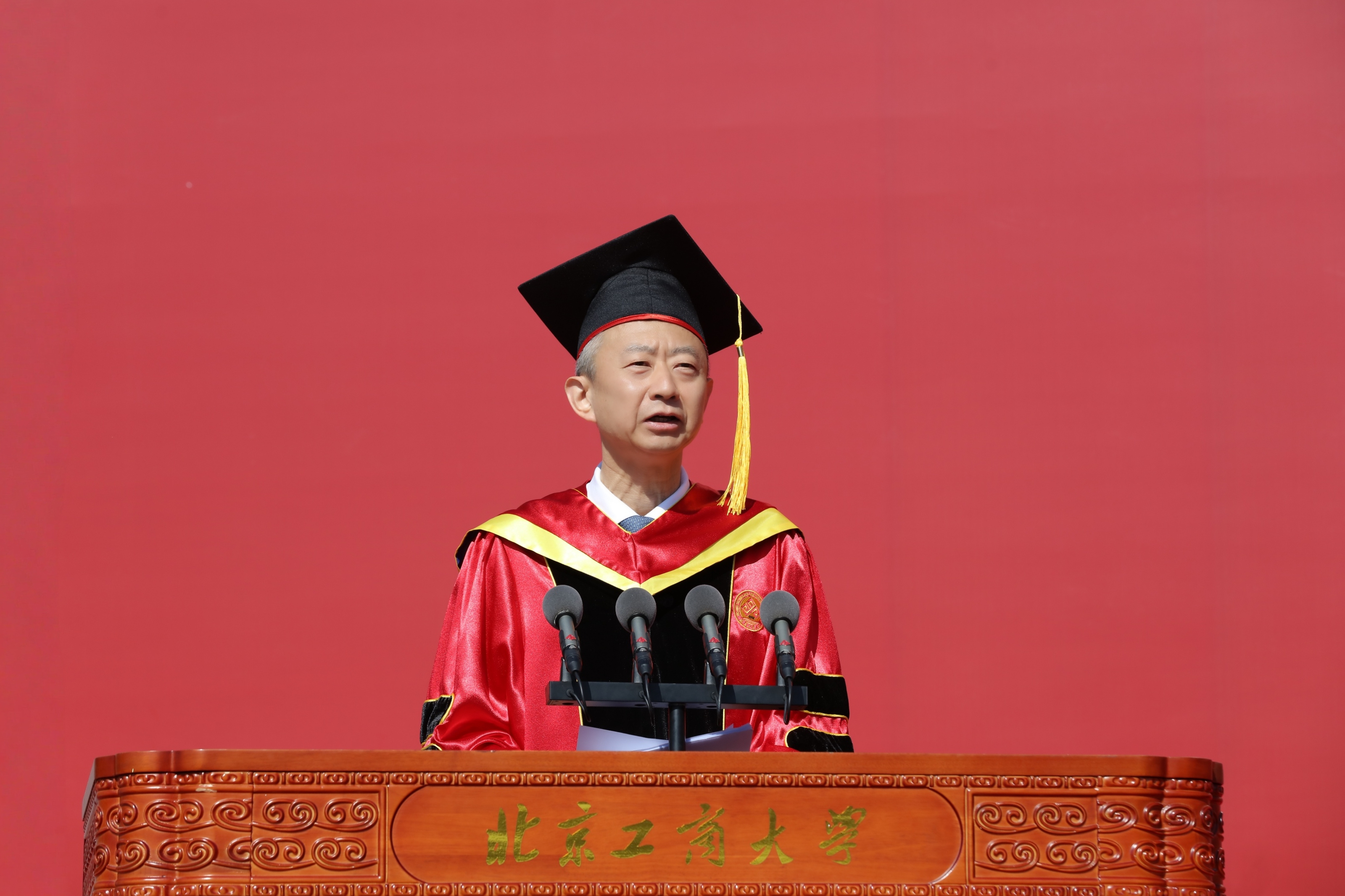 黨委常委、副校長(zhǎng)毛新述宣讀《北京工商大學(xué)關(guān)于2025屆研究生畢業(yè)及學(xué)位授予的決定》。