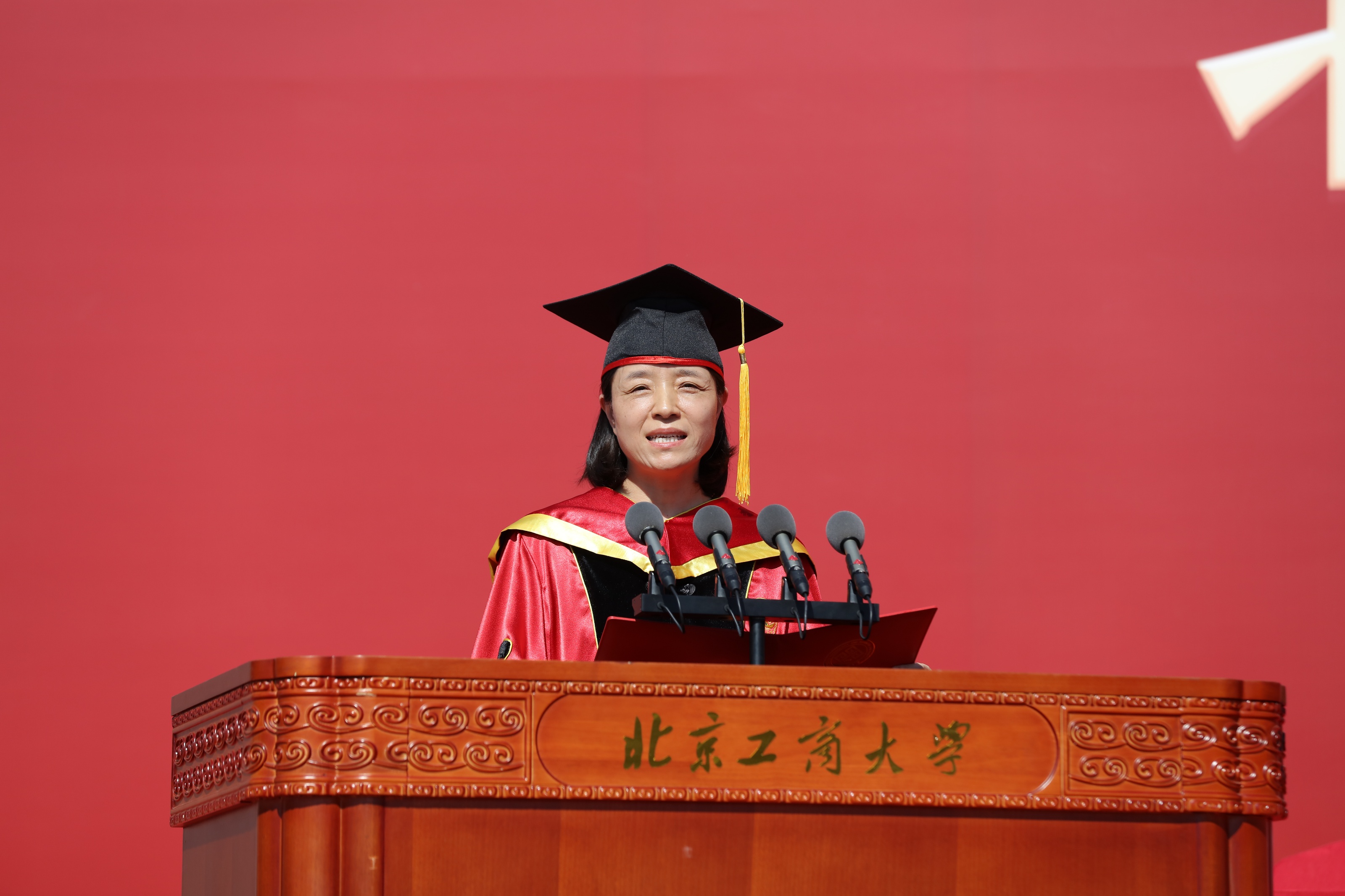 副校長(zhǎng)劉艷楠宣讀《北京工商大學(xué)關(guān)于2025屆本科生畢業(yè)及學(xué)位授予的決定》。