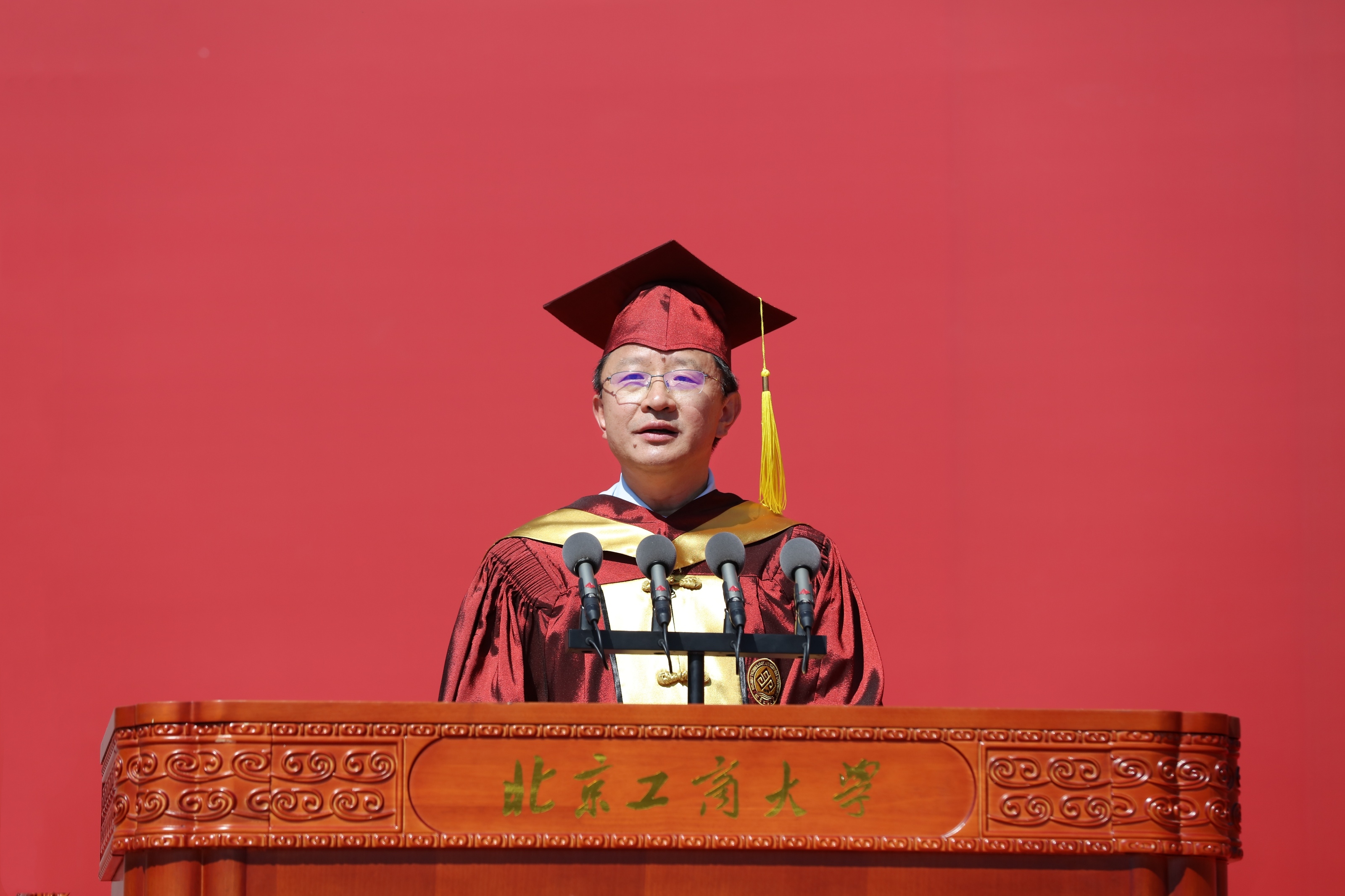 黨委副書記、校長(zhǎng)郭建華以《工商一體,護(hù)夢(mèng)遠(yuǎn)航》為題講話。他代表學(xué)校向畢業(yè)生們表示最衷心的祝賀和最美好的祝愿,向辛勤培育學(xué)子的老師們表示崇高的敬意,向給予學(xué)子們無(wú)限溫暖和力量的家長(zhǎng)們表示誠(chéng)摯的感謝。
