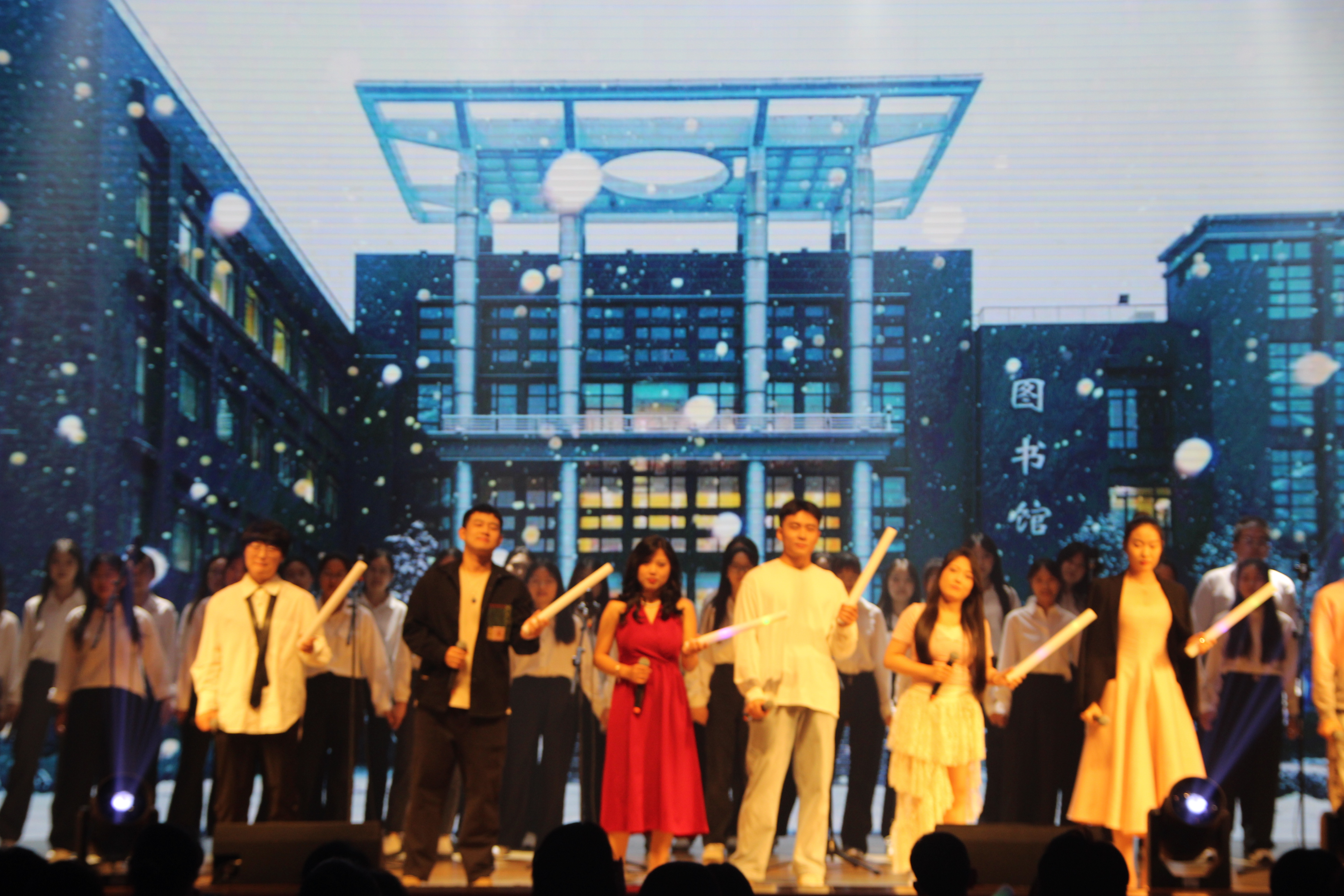 第三篇章“乘風歸來”在六位同學的歌曲串燒中開啟,將現場的氣氛推向高潮,最后,畢業生代表們共同唱響北工商版的《如愿》,由師生共創的歌詞里飽含著同學們在校學習和生活的點點滴滴和對母校的依依不舍,用歌聲表達了對母校的感激之情和對未來的美好期許。