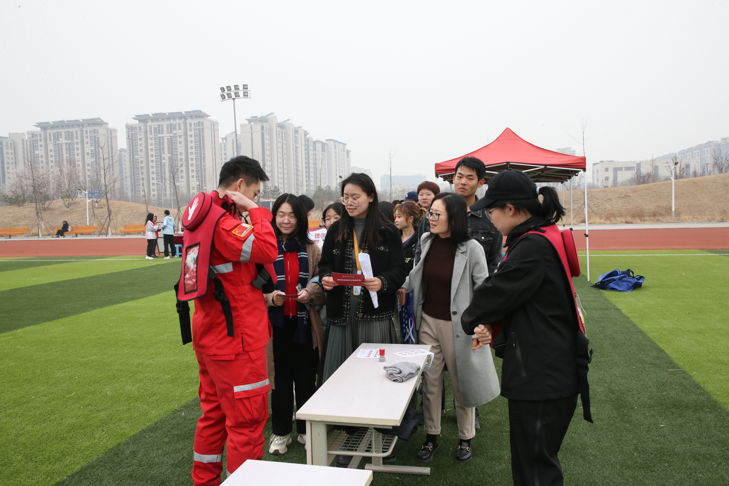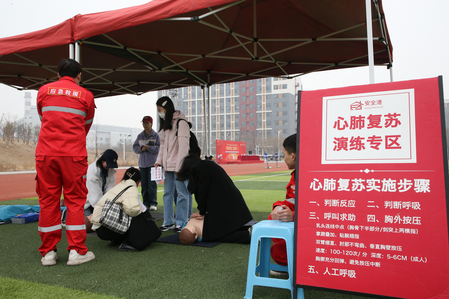 為增強參演師生的體驗感,進一步掌握安全自救的相關技能,在疏散演習結束后,保衛處組織開展了消防安全嘉年華活動。活動現場設置了“模擬滅火體驗、煙霧逃生體驗、消防安全隱患排查演練、疏散逃生防踩踏演練、消防栓模擬操作、電動車模擬著火冒煙試驗、心肺復蘇體驗和海姆立克急救體驗”等8個體驗科目,由第三方專業公司組織實施。因與實踐結合緊密,實操性強,活動受到廣大師生的歡迎和好評。