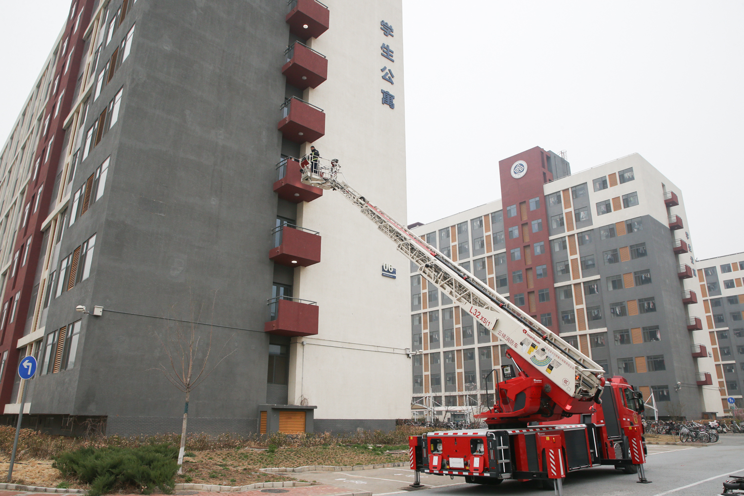 本次疏散演習是以學生違規將電動平衡車帶入宿舍內充電引發火災為預設背景,分“發現火情、報警與接警”“人員疏散、搜救及滅火”“人員集結與總結”三個階段具體實施,對發生火情時學校相關部門應對處置的方法和師生疏散逃生的程序進行全過程實戰演練。在各應急小組緊密協同配合下,所有參演師生員工在預定時間內全部安全疏散至指定地域,達到了演習預期目標,展示了學校日常消防安全宣傳教育培訓的成效。良鄉大學城微型消防站官兵為參演師生演示了云梯車高空營救被困人員科目。