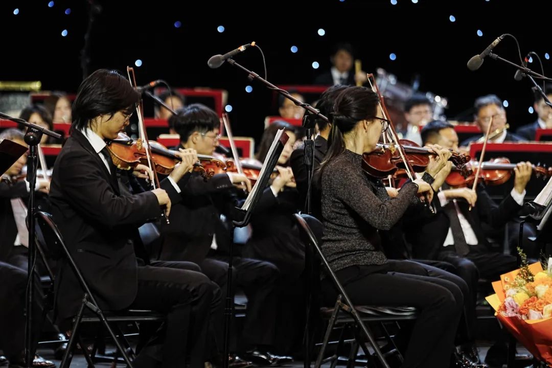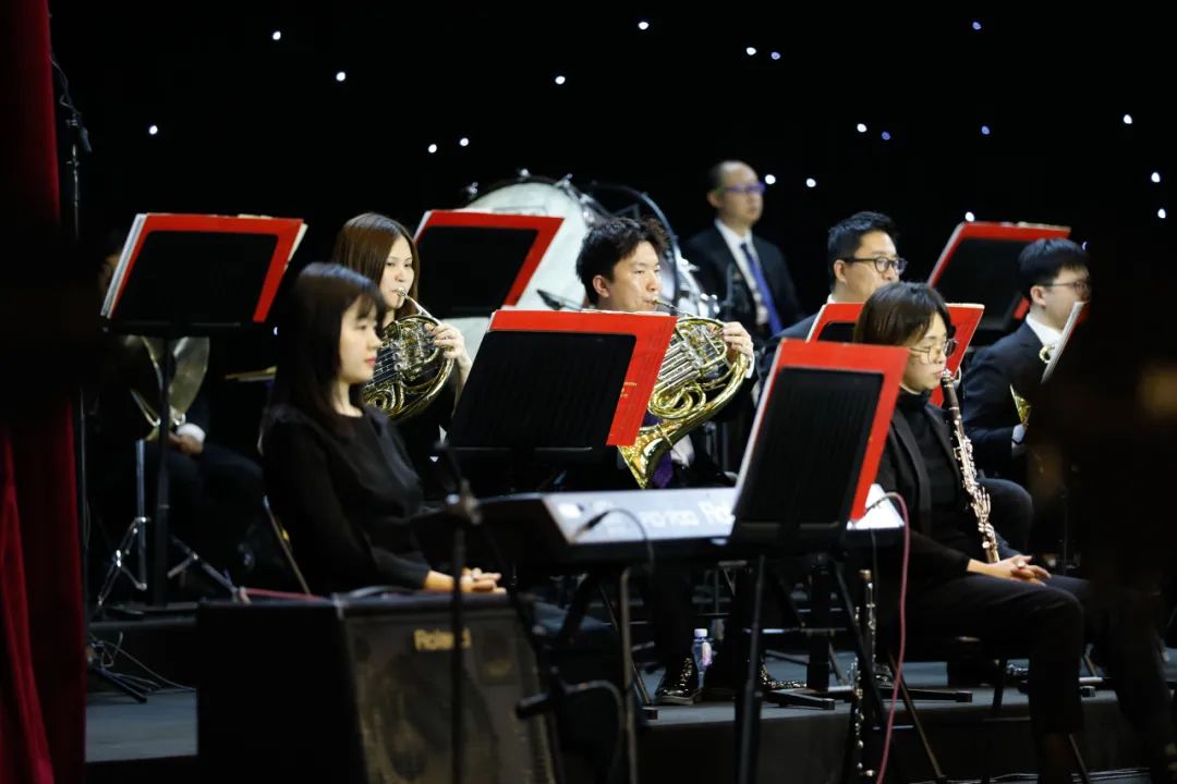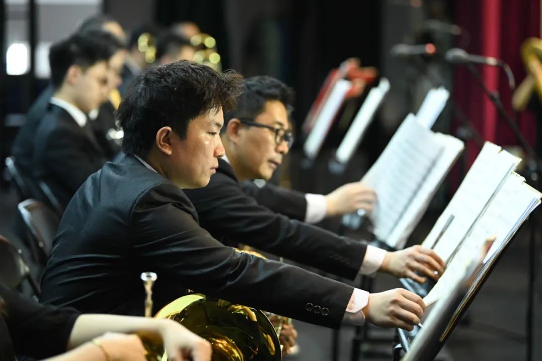音樂會曲目豐富多樣,既有經典交響樂、芭蕾名作以及歌劇音樂精選,也有膾炙人口的影視音樂。柴可夫斯基《四小天鵝》輕盈靈動,約翰·巴里的《時光倒流七十年》主題曲浪漫悠揚;埃爾默·伯恩斯坦的電影《七俠蕩寇志》主題音樂與詹姆斯·霍納的《燃情歲月》主題曲,豪邁與深情相得益彰。此外,動畫經典《大魚》和《天空之城》空靈唯美,比才《卡門》序曲與羅西尼《威廉·退爾》序曲則展現了歌劇的永恒魅力。師生們沉浸在這風格各異卻又同樣動人心弦的音樂世界里,樂團用精湛的技藝和飽滿的情感,為師生們呈現了一場充滿激情的音樂之旅。