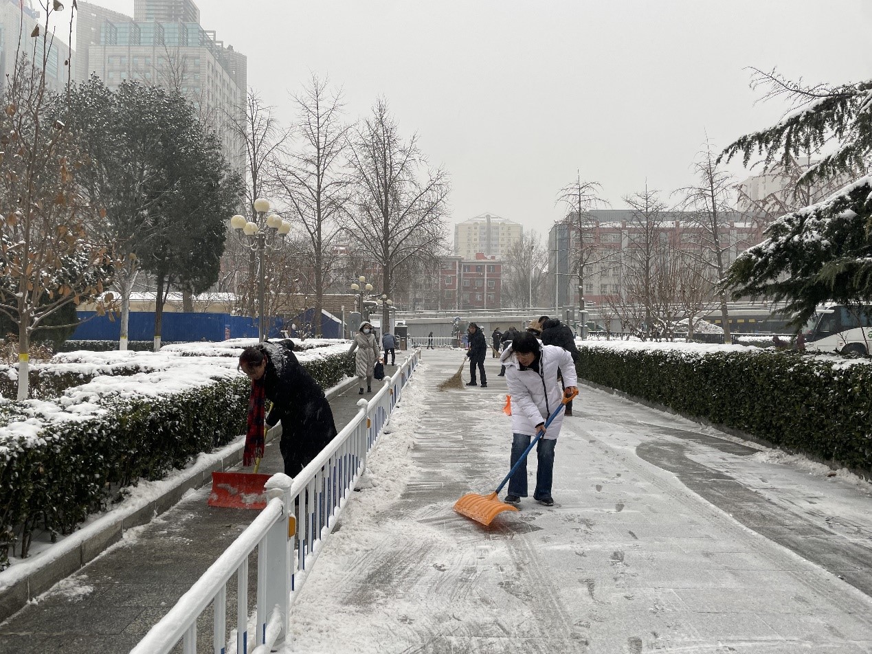 連日來,全市迎來強降雪和寒潮天氣。為最大限度減少冰雪天氣對師生出行和教學秩序帶來的不利影響,學校提前研判、迅速部署,于12月14日上午組織阜成路校區在崗機關干部投入清理冰雪一線。