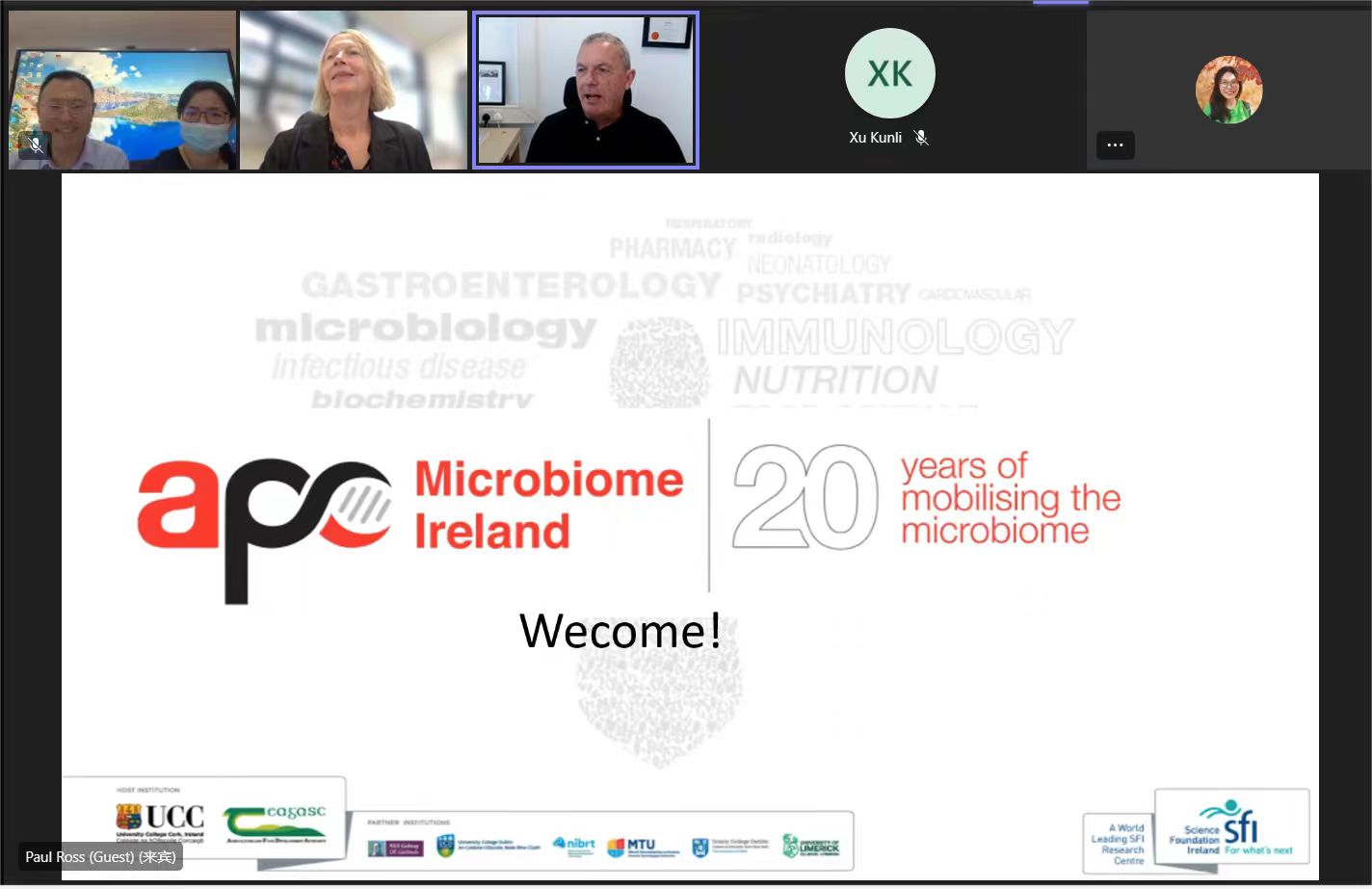 近日,愛爾蘭國家APC微生物組研究所(APC Microbiome Ireland, 簡稱APC)、愛爾蘭農業部農業與食品發展局(Teagasc)與北京工商大學食品與健康學院進行了線上合作交流。此次會議APC負責人、愛爾蘭皇家科學院院士、愛爾蘭科克大學保羅·羅斯(Paul Ross)教授及Teagasc負責人、愛爾蘭皇家科學院院士、愛爾蘭科克大學凱瑟琳·斯坦頓(Catherine Stanton)教授參會,學院院長王彥波教授、副院長王蓓教授以及孟繁宇博士參加了本次合作交流會。