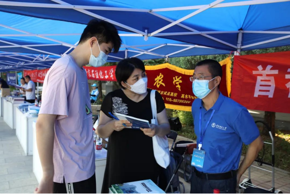 15個學(xué)院為考生和家長面對面進行了專業(yè)特色的介紹和宣傳。學(xué)院負(fù)責(zé)人、教授現(xiàn)場介紹學(xué)院和專業(yè)特色,有問必答,耐心指導(dǎo)。