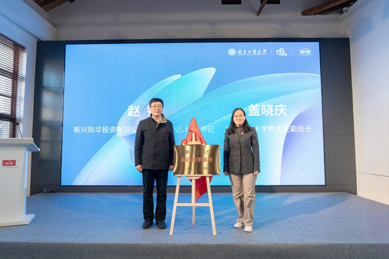 學校教務處副處長蓋曉慶與新興際華投資有限公司黨委副書記、紀委書記趙銘共同為實習實踐基地揭牌。揭牌儀式后,校企雙方圍繞“北京工商大學服務行業及首都發展”開展座談交流。