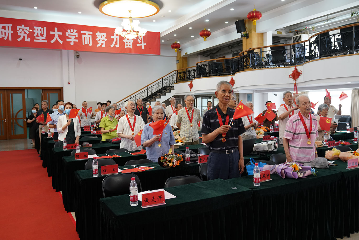 黃先開代表學校黨委向獲得“光榮在黨50年”紀念章的老黨員表示祝賀,向所有離退休老黨員表示誠摯的問候。黃先開表示,今年黨中央決定為黨齡50年以上的老黨員頒授紀念章,在中國共產黨的歷史上是第一次,體現了黨對老黨員的深切關懷和高度肯定,同時教育引導年輕黨員干部對標老黨員們崇高的境界和務實的作風,賡續光榮傳統,傳承精神譜系。