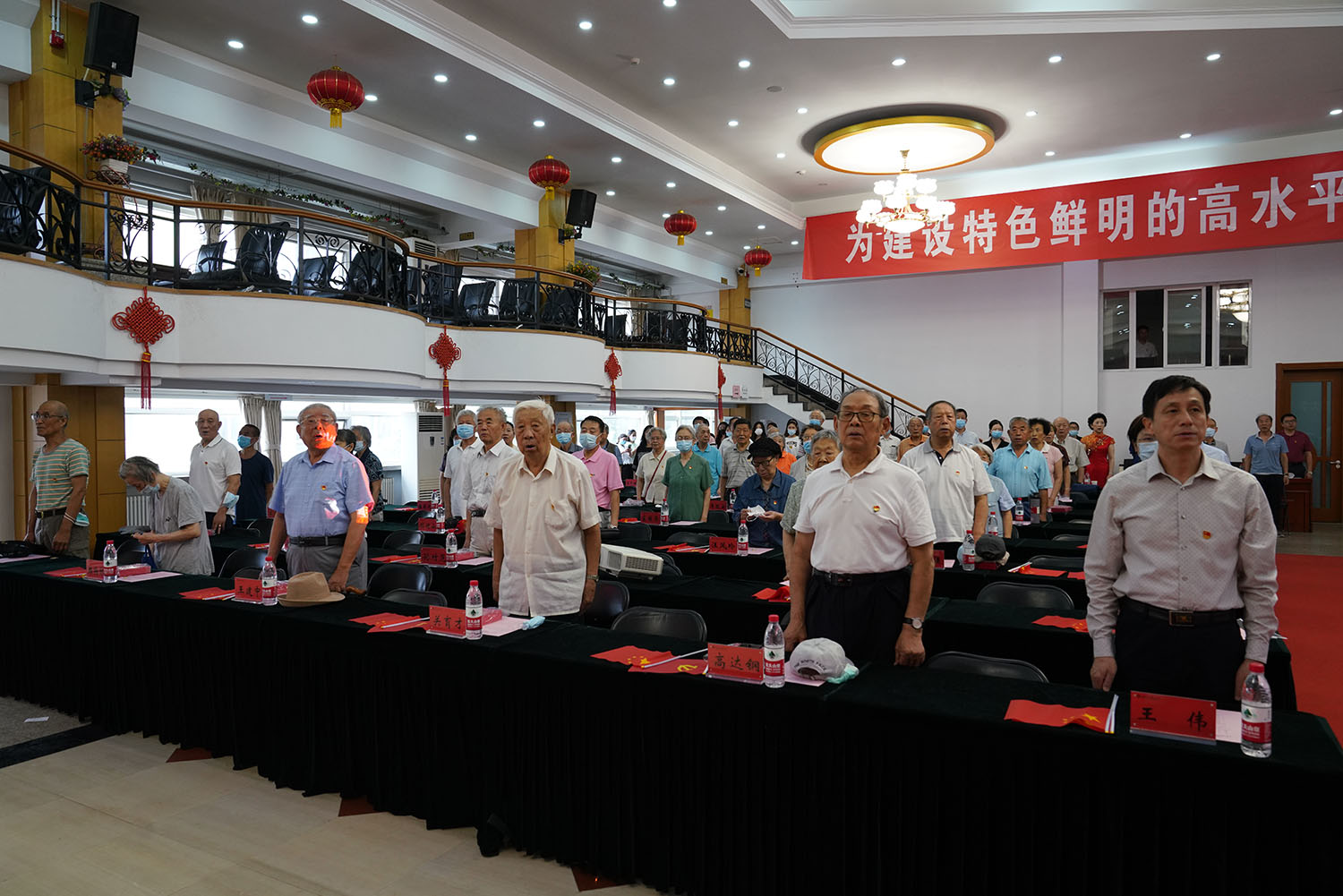 儀式最后,大家一邊揮舞手中的黨旗和國旗,一邊齊聲合唱歌曲《沒有共產黨就沒有新中國》,“光榮在黨50年”紀念章頒發儀式在激動人心的旋律中落下帷幕。