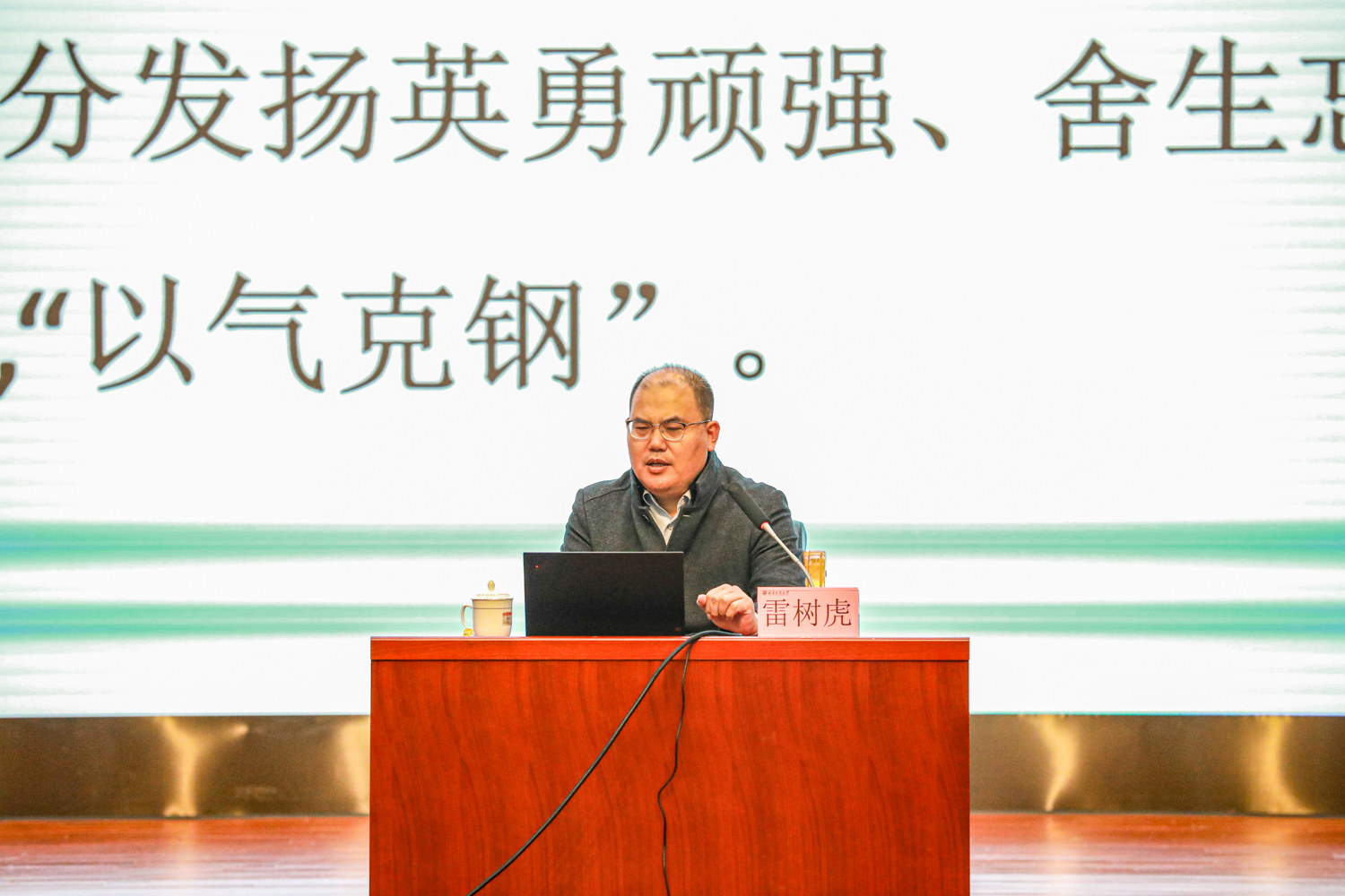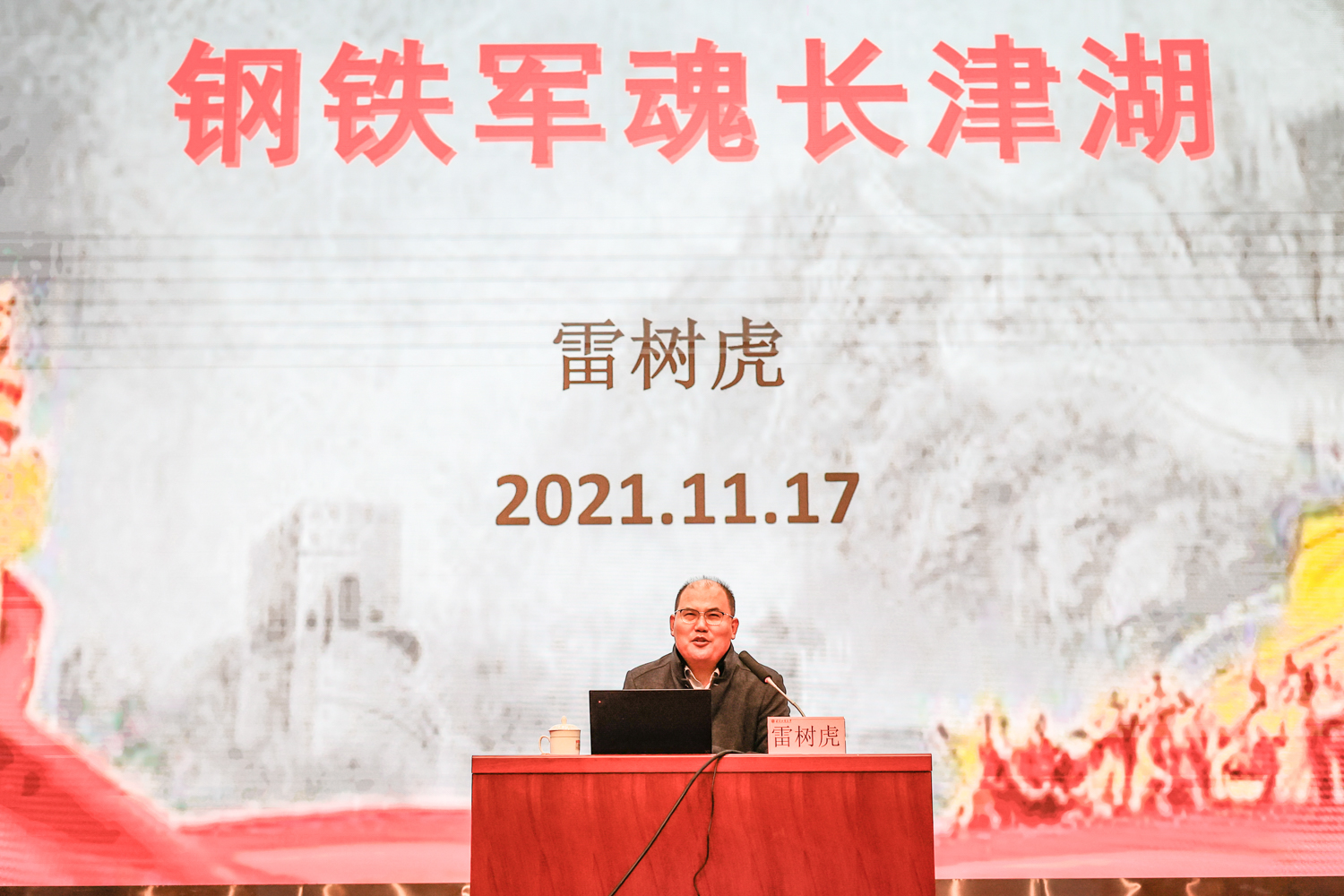 雷樹虎與大家分享他采訪志愿軍第九軍團(tuán)司令宋時輪女兒的經(jīng)歷,當(dāng)時,宋時輪的首要任務(wù)是“讓敵人從哪里來再從哪里退,之后穩(wěn)定戰(zhàn)局?!泵儡娕c我軍第九兵團(tuán)的裝備實力懸殊,但我軍最終戰(zhàn)勝強敵。雷樹虎總結(jié)了其中的戰(zhàn)略密碼:“其一是第九軍團(tuán)誘敵深入創(chuàng)造了圍殲強敵的有力戰(zhàn)機。其次是長途機動,隱蔽抵達(dá),從而達(dá)到了‘攻其所不戒’的效果。最重要的是志愿軍在靈活運用戰(zhàn)術(shù)的基礎(chǔ)上,充分發(fā)揚英勇頑強、舍生忘死的革命英雄主義精神,‘以氣克剛’。”使得長津湖戰(zhàn)役成為了保家衛(wèi)國的“立國之戰(zhàn)”。