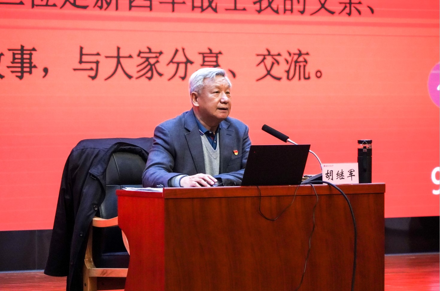 11月16日,北京新四軍研究會副會長、北京鐵軍文化傳播中心秘書長胡繼軍以“建黨百年鑄輝煌,共產(chǎn)黨員是棟梁”為題,從共產(chǎn)黨人的初心使命講起,講述了新四軍軍長葉挺將軍以及胡繼軍的父親、母親、岳父三位新四軍戰(zhàn)士在戰(zhàn)爭年代堅定信念跟黨走、英勇作戰(zhàn)、不怕犧牲、無私奉獻(xiàn)的故事,謳歌了中國共產(chǎn)黨黨員和人民軍隊堅定的理想信念、崇高的思想境界和優(yōu)秀的道德品質(zhì)。