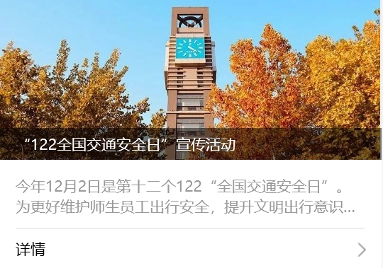 活動引領(lǐng),做到師生廣泛參與。各學(xué)院召開交通安全主題班會,將交通安全理念內(nèi)化于心,外化于行,固化文明出行習慣。保衛(wèi)處開展“文明交通 共建共享”交通安全演講活動,組織選手參加海淀區(qū)高校系統(tǒng)演講比賽,最終在30所高校角逐中取得個人三等獎的優(yōu)異成績。