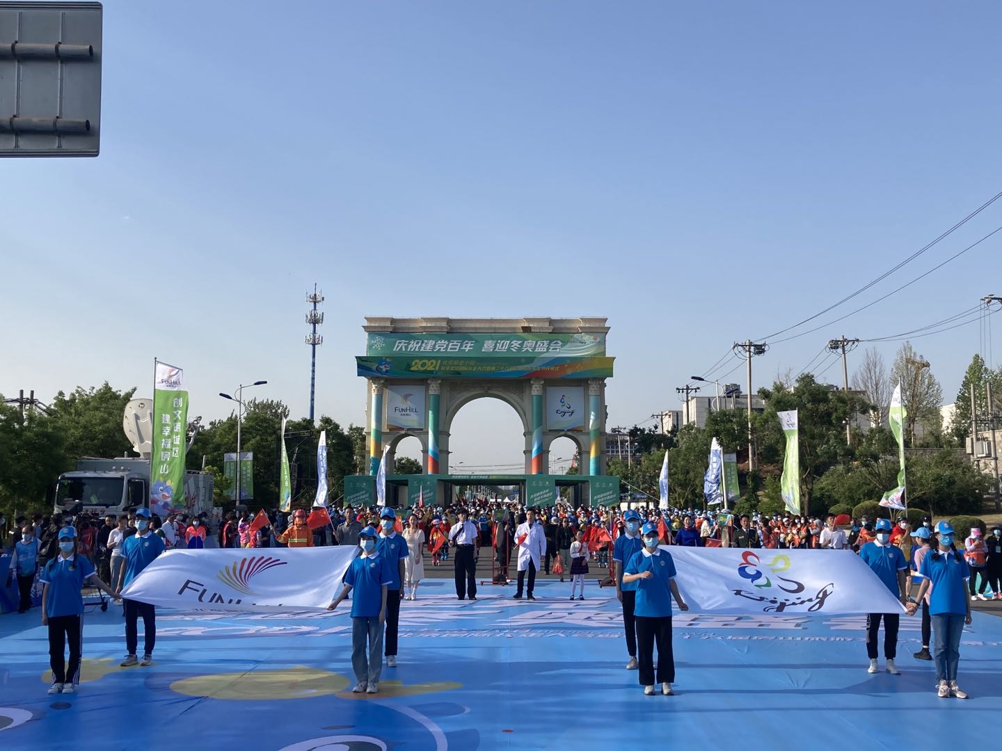 本次活動以“奮進(jìn)新時代 永遠(yuǎn)跟黨走”為主題,緊扣慶祝中國共產(chǎn)黨成立100周年主線,依托北京基金小鎮(zhèn)建設(shè)亮點,同時融入2022北京冬奧的宣傳元素,充分展現(xiàn)“生態(tài)宜居示范區(qū)、科技金融創(chuàng)新城”新房山的建設(shè)成果。長走大會的起點設(shè)在長溝鎮(zhèn)凱旋大街中國房山世界地質(zhì)公園博物館前,終點設(shè)在北京基金小鎮(zhèn)國際會議中心。本次長走共設(shè)置 “奮斗之路”和“傳承之路”兩條路線,路線距離分別為6公里和16.5公里。共有來自社會各界的8000余名“走友”參與了本次活動,他們身著五色服裝,分布在“永”、“遠(yuǎn)”、“跟”、“黨”、“走”五個方陣隊列中。