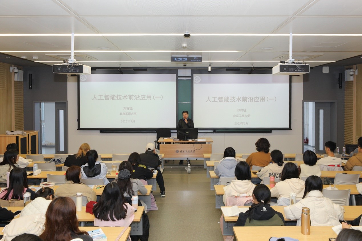 為深入貫徹落實(shí)習(xí)近平新時(shí)代中國(guó)特色社會(huì)主義思想和黨的二十大精神,充分發(fā)揮思想政治理論課作為落實(shí)立德樹(shù)人根本任務(wù)關(guān)鍵課程的作用,3月11日,黨委常委、副校長(zhǎng)鄧祥征走進(jìn)學(xué)生課堂,為2024級(jí)金融和經(jīng)濟(jì)專(zhuān)業(yè)學(xué)生講授主題為“人工智能技術(shù)前沿應(yīng)用”的思政課。