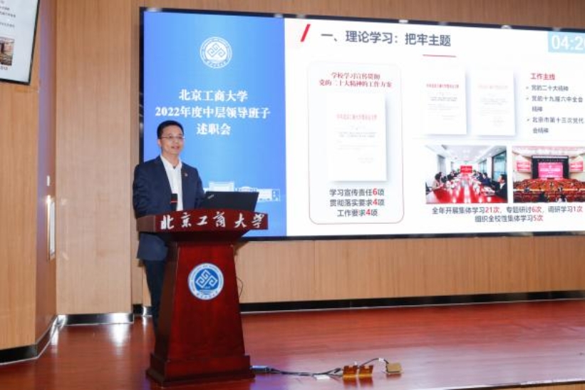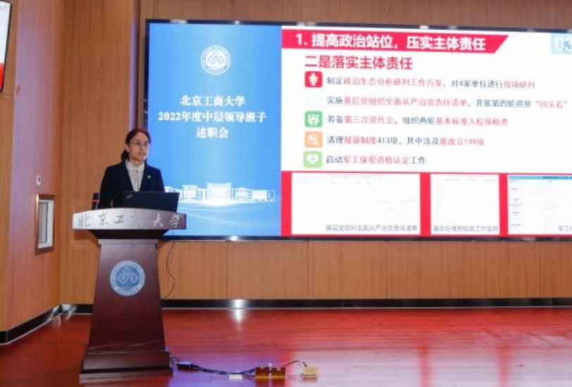 根據學校中層領導班子、中層干部考核工作安排,由各二級單位行政負責人依次代表領導班子對年度工作進行述職。各二級單位負責人根據本單位自身職責定位,圍繞學校黨政工作要點、十大重點工作任務等內容,涵蓋黨的建設、班子自身建設、黨風廉政及作風建設等方面情況,以PPT文稿演示的形式,講亮點、談問題、講關鍵、謀實招,匯報了年度工作完成情況,展示了工作業績,分析了突出問題,提出了改進措施,并對2023年重點工作進行了展望。