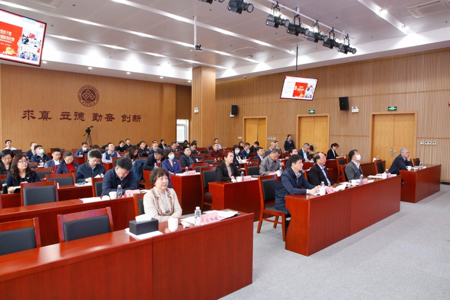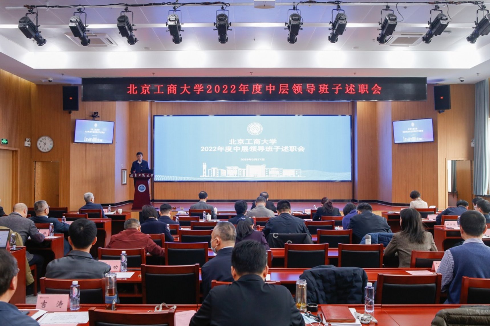 2月27日,學校召開2022年度中層領導班子述職測評會。校領導黃先開、孫寶國、王偉、李中奇、歐陽媛、鄭文紅、徐丹丹、劉敏華、左敏出席會議。全體黨政管理部門、群團組織、教輔單位負責人和教學單位行政負責人現場參會。會議由學校黨委副書記王偉主持。