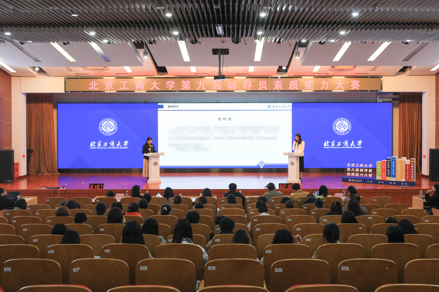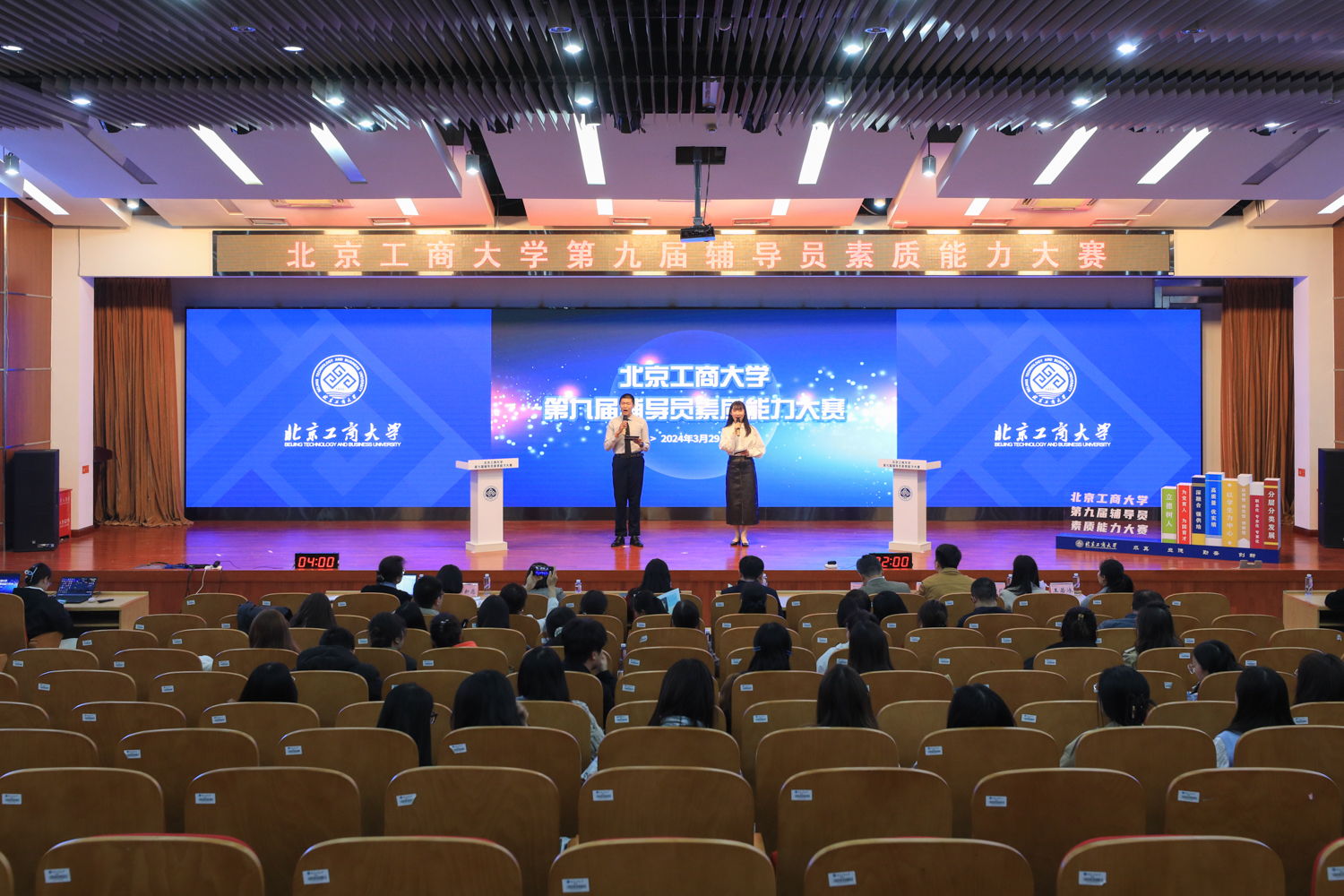 3月29日,在良鄉(xiāng)主校區(qū)舉行北京工商大學(xué)第九屆輔導(dǎo)員素質(zhì)能力大賽。首都師范大學(xué)團委書記王洵,北方工業(yè)大學(xué)馬克思主義學(xué)院黨委書記張茂林,北京理工大學(xué)學(xué)生工作部副部長茍曼莉,北京石油化工學(xué)院團委副書記王鑫,學(xué)校黨委學(xué)生工作部、研究生工作部、團委負責(zé)人擔(dān)任大賽評委,各學(xué)院黨委副書記及輔導(dǎo)員觀摩了比賽。