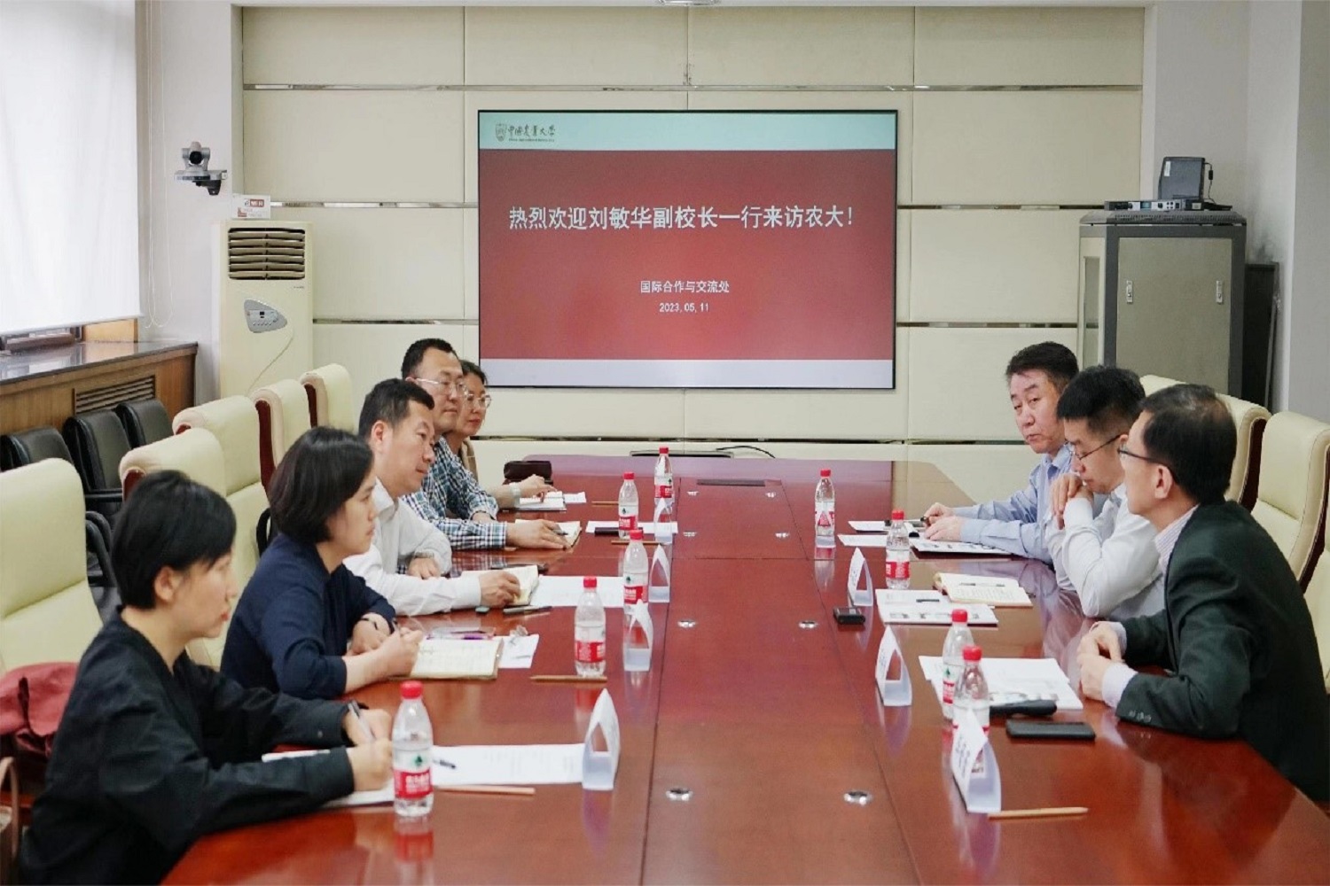 5月11日,在中國農業大學,黨委常委、副校長杜太生對劉敏華到訪表示歡迎,他詳細介紹了中國農業大學圍繞服務國家總體外交和聚焦“雙一流”建設制定的國際交流提升計劃,國際處處長馮偉哲結合學校國際合作歷史和國際化發展現狀對學校國際化發展工作規劃進行了詳細的解讀。杜太生表示,中國農大與北工商在學科建設和科研合作方面開展了很多的合作,希望以此為基礎,進一步加強雙方的溝通聯絡和資源共享,共同推進兩校在國際化方面的密切合作與高質量發展。
