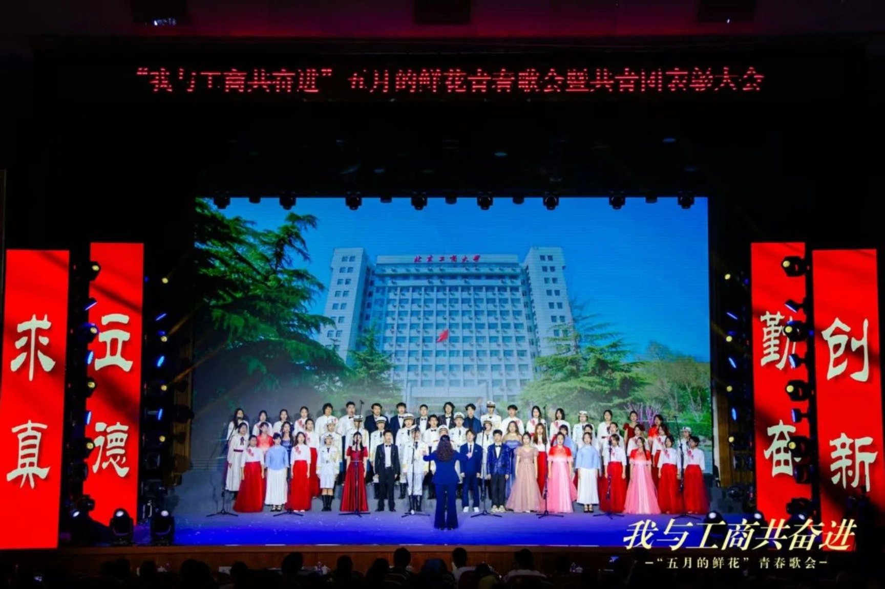 火紅的五月,青春的花海。5月14日,學校在良鄉主校區A報告廳舉辦“我與工商共奮進”五月的鮮花青春歌會暨共青團表彰大會,北工商青年師生用歌聲精心打造愛國主義“音樂思政課”,紀念中國人民抗日戰爭暨世界反法西斯戰爭勝利80周年、中國人民志愿軍抗美援朝出國作戰75周年、五四運動106周年。北工商學子以青春為歌,重溫拼搏奮斗的歲月,凝聚奮進力量,激勵全校師生勇擔時代使命。