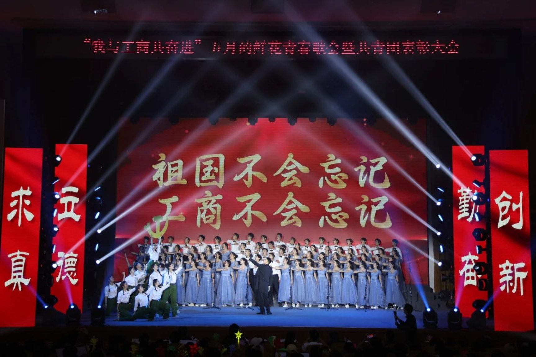 經濟學院、數字書院的《祖國不會忘記》《新的天地》,精心設計老中青三代校友傳承接力,展現北工商七十五載薪火相傳的奮進力量。他們用歌聲講述著母校發展的風雨兼程,他們用歌聲唱出一代代工商人的壯志豪情。