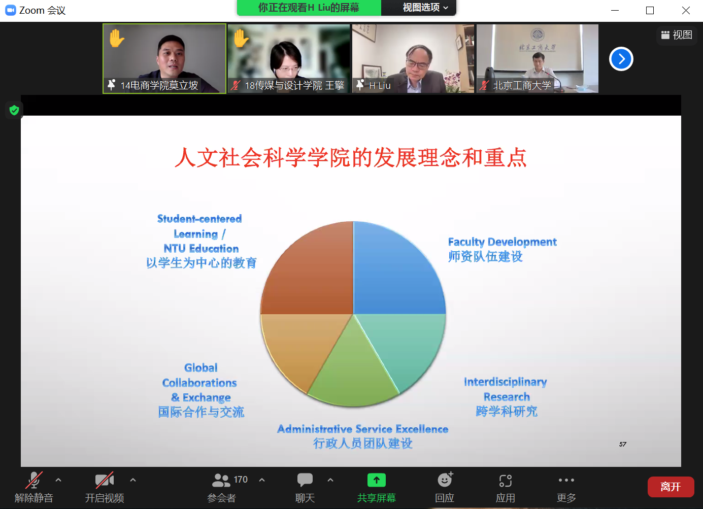 劉宏教授作為新加坡南洋理工大學專場培訓項目的南大負責人回顧了系列培訓的開展情況,肯定兩校透過平臺加強合作、促進相互學習和共同成長的做法,并期待與北京工商大學建立持續(xù)的合作關(guān)系。