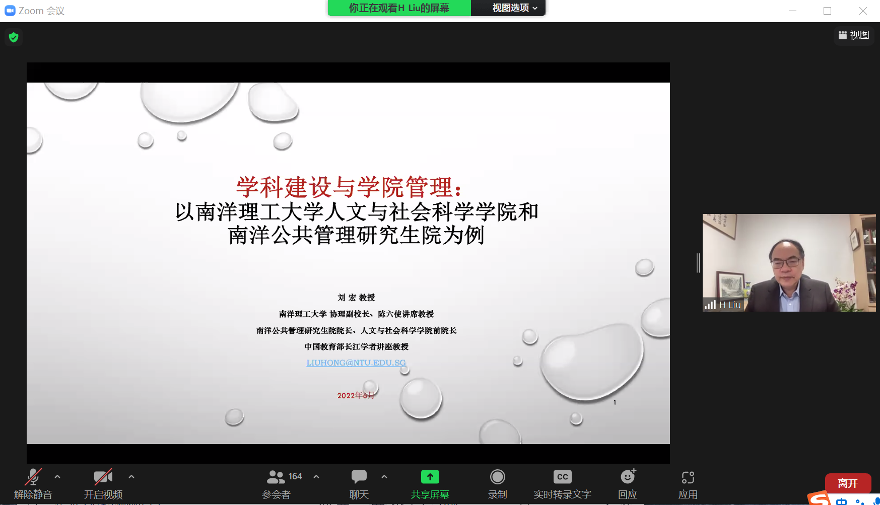 6月15日,學校召開2022年干部治理能力提升系列培訓新加坡南洋理工大學第3次專場培訓、黨委理論學習中心組(擴大)會,邀請新加坡南洋理工大學協(xié)理副校長劉宏教授分享學科建設與學院管理等經(jīng)驗。校領(lǐng)導、全體中層干部線上參會。會議由學校黨委副書記王偉主持。