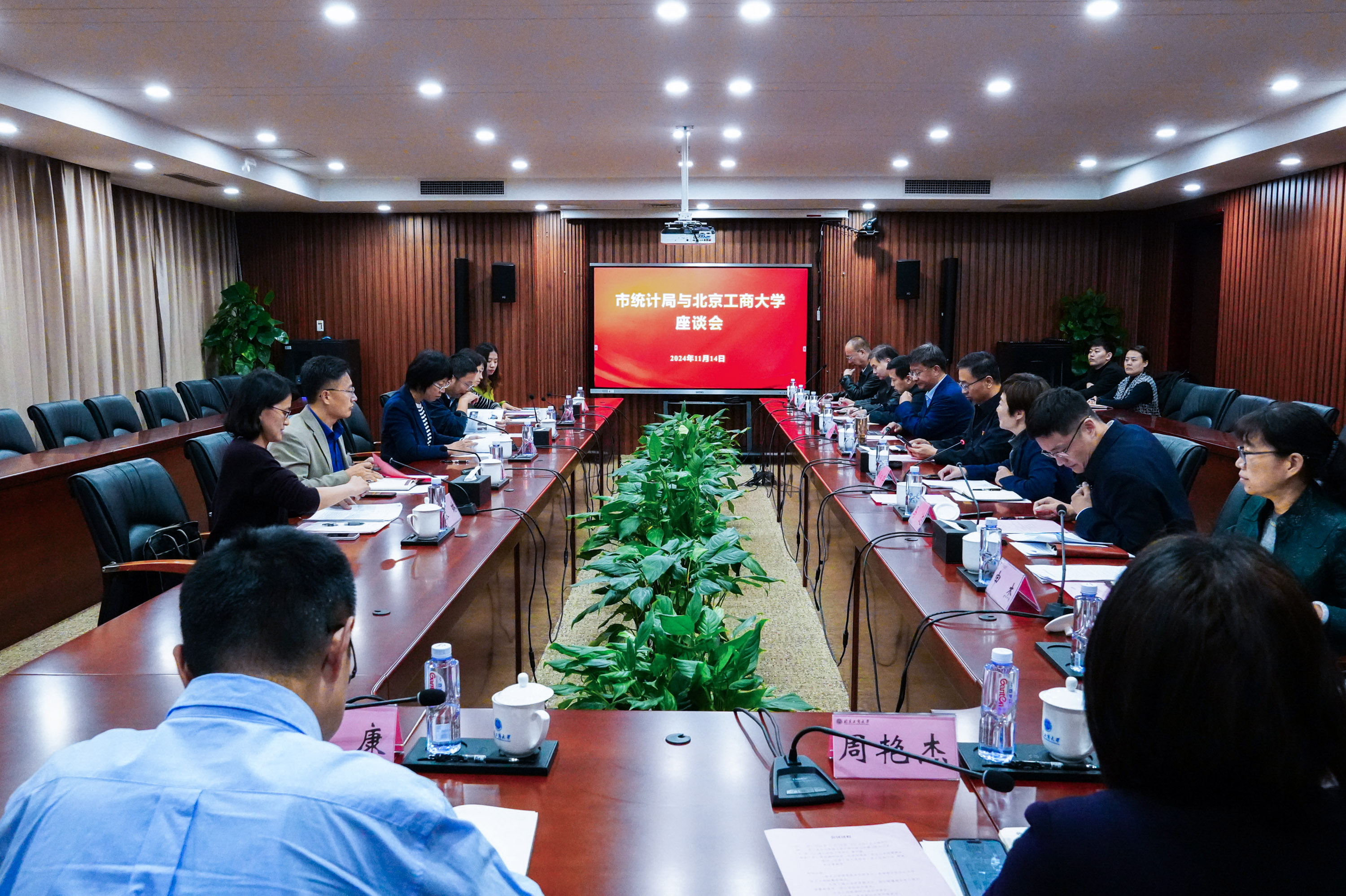 北京市統計局數據應用處處長賴偉臣、人口處處長張琳、科技處處長安慧、人教處處長劉軍、辦公室三級主任科員王麗穎;房山區經濟社會調查隊隊長申杰;學校科學研究院自然科學處處長錢立軍、國內交流與合作處處長張曉磊、數學與統計學院黨委書周艷杰、數學與統計學院副院長王康等參加調研座談。