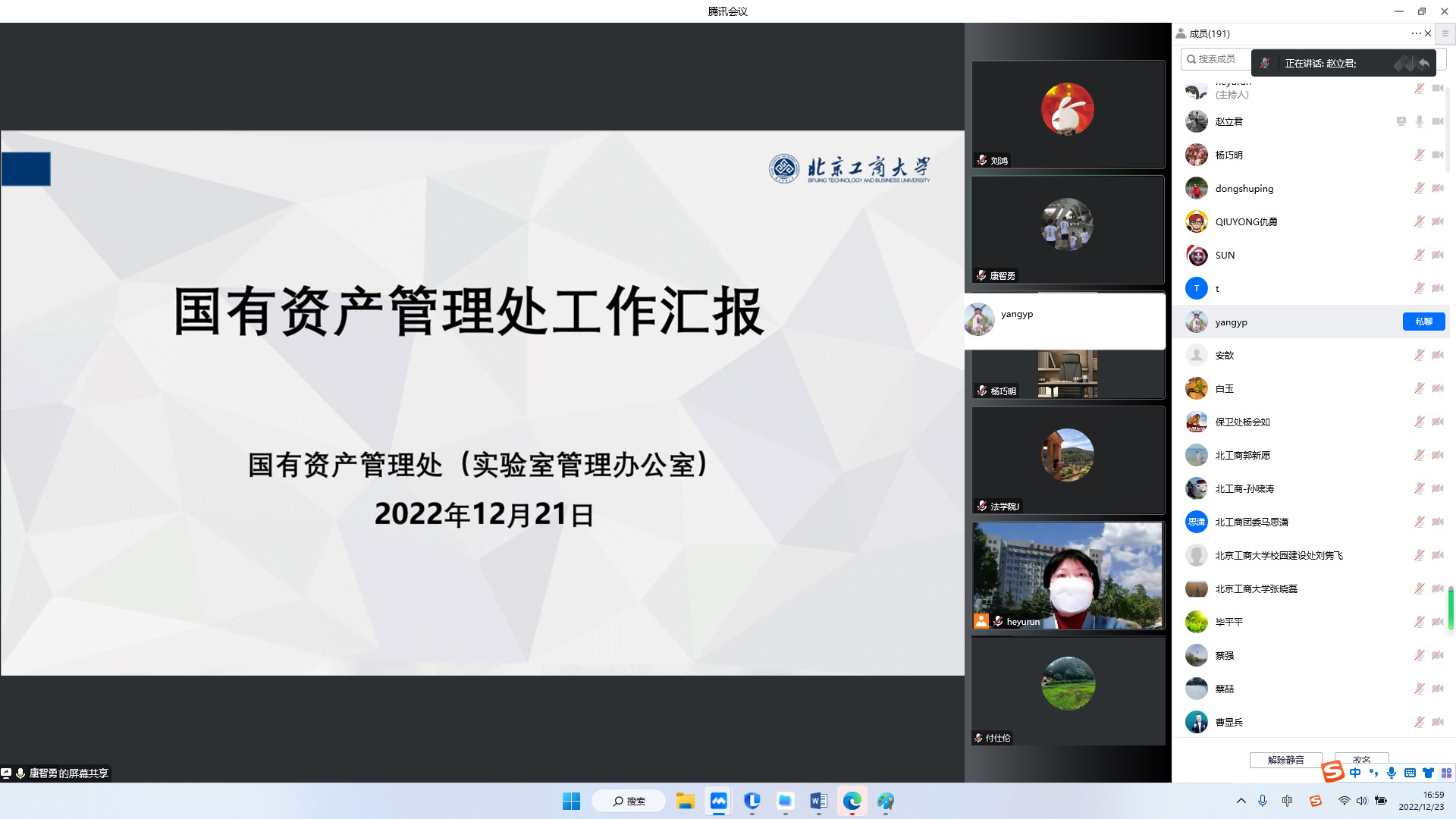 結合我校2022年內部控制建設工作中存在問題,計劃財務處處長何玉潤、國有資產管理處處長康智勇和審計處處長趙立君分別進行了工作匯報。何玉潤圍繞學校全面預算管理中預算目標設立、預算編制及項目入庫、預算執行、績效評價四個環節中存在的問題進行了重點闡述并提出了相關工作建議,介紹了學校2023年即將上線的預算一體化管理平臺的功能;康智勇重點剖析了在項目申報、資產配置、資產驗收、固定資產賠償,大型儀器設備開放共享等工作中存在的問題,以及實驗室的安全管理中存在的風險,提出了工作建議;趙立君重點對學校審計發現的內部控制問題和相關風險事項進行了說明,并結合市教委的要求、學校發展的需要和具體情況,提出了相關工作建議。